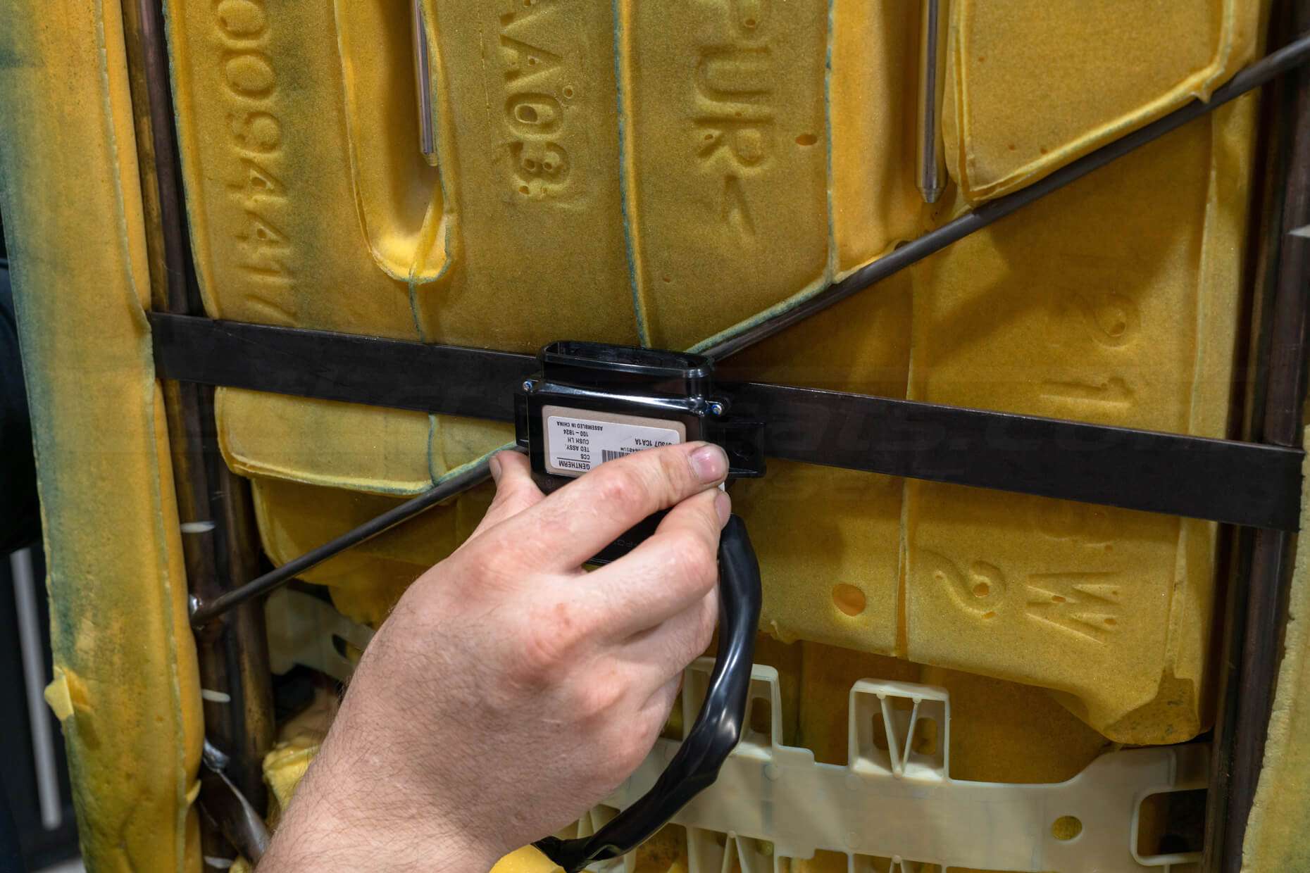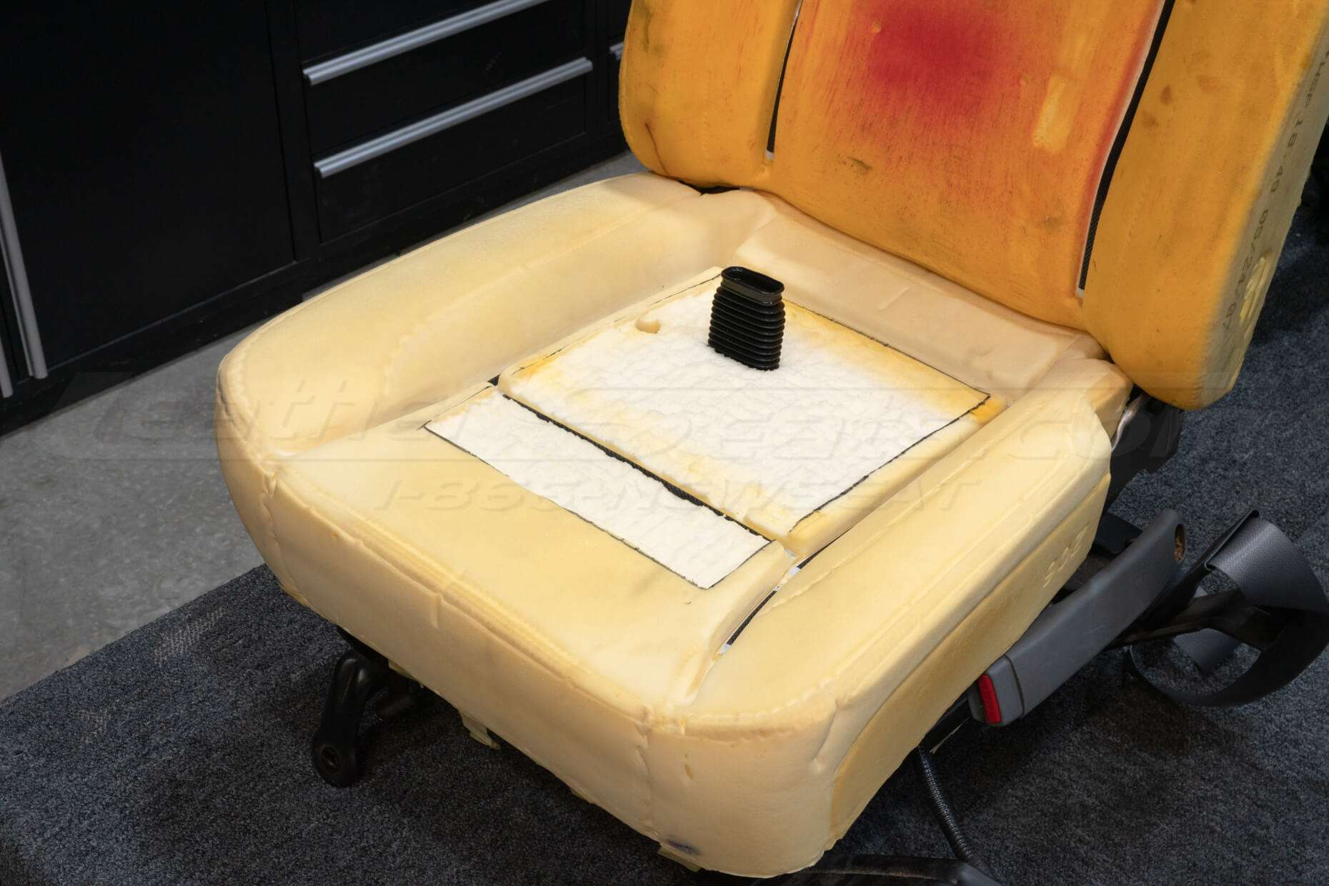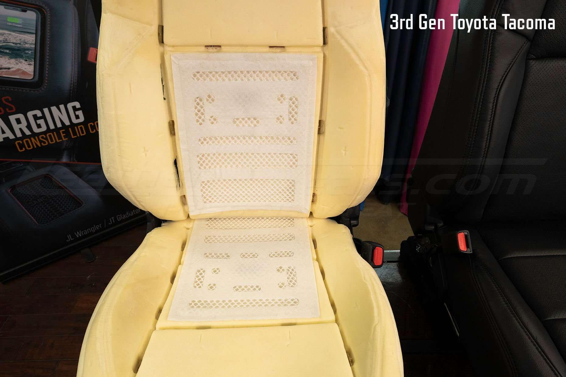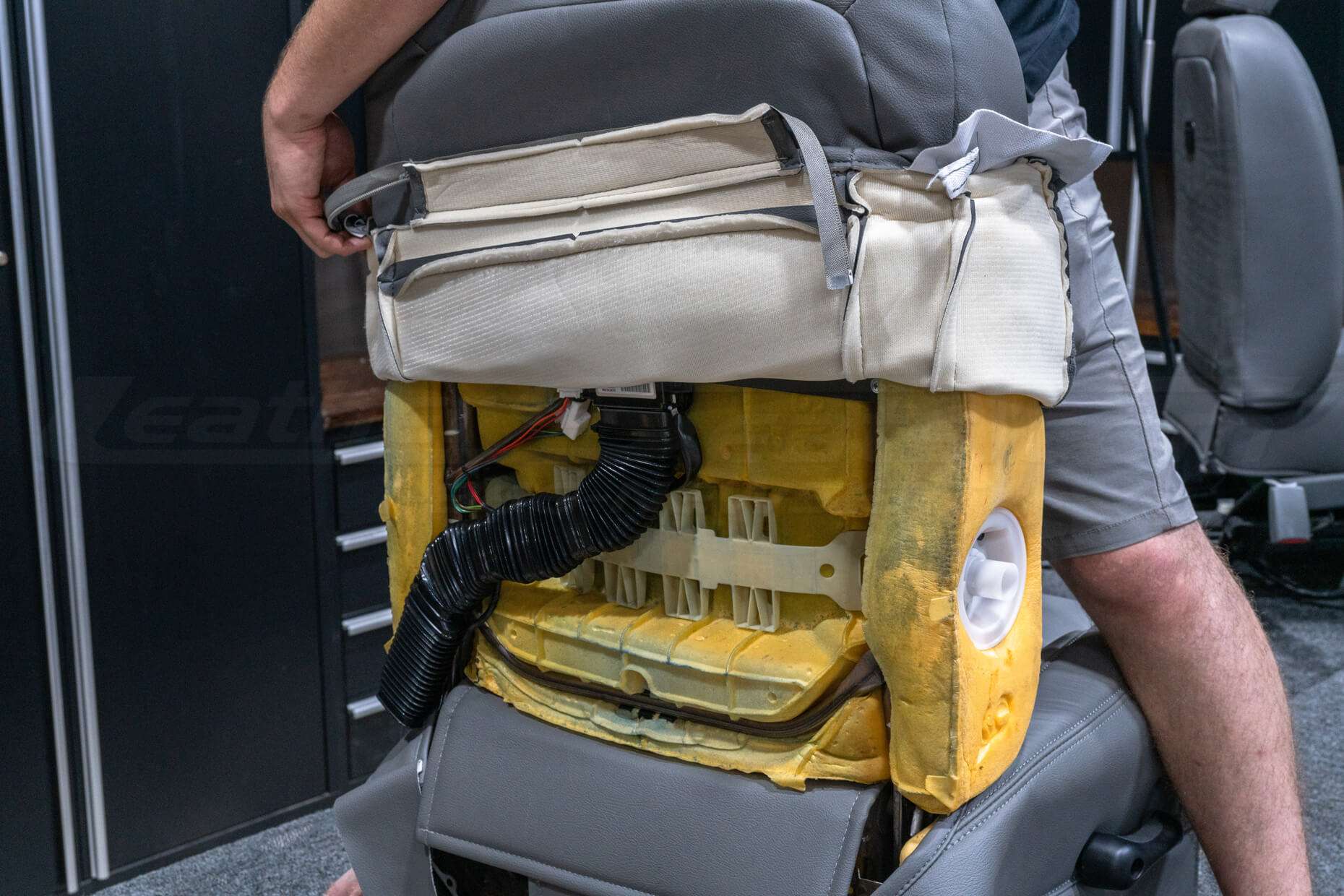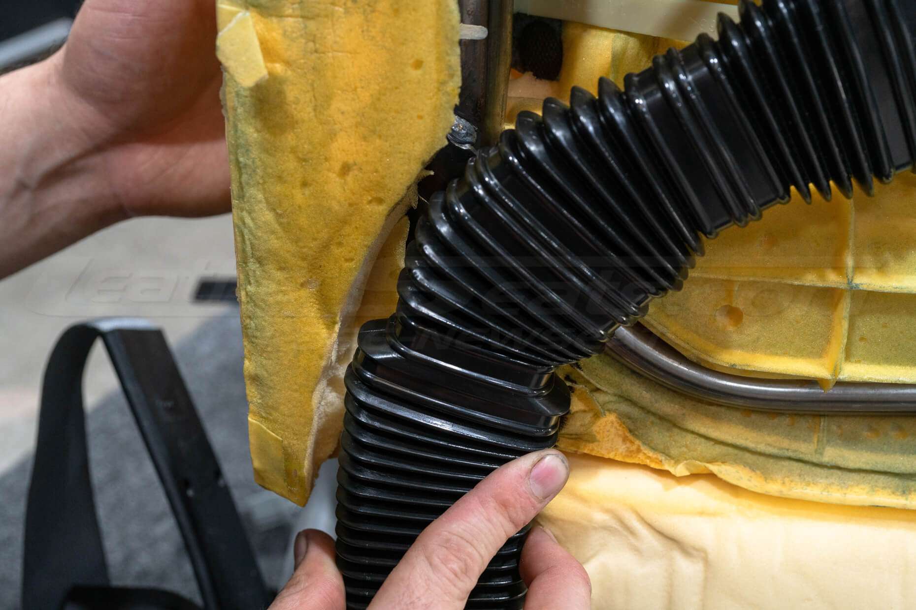 Some seat components may need to be modified to mount the TED and blower assembly. In this example, we modified the seat foam and added an additional bracket to the seat frame to mount the TED and blower assembly flush with the seatback.