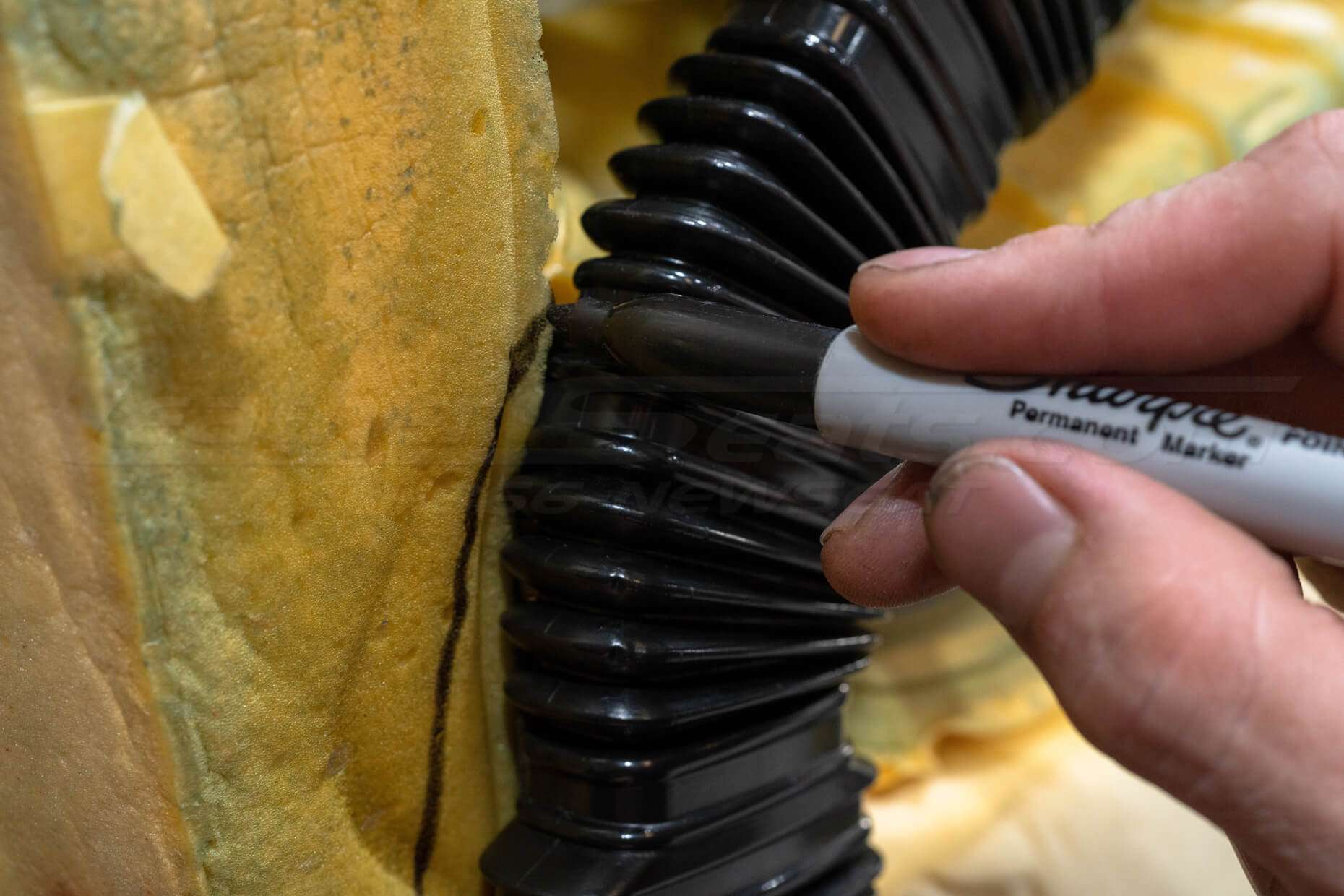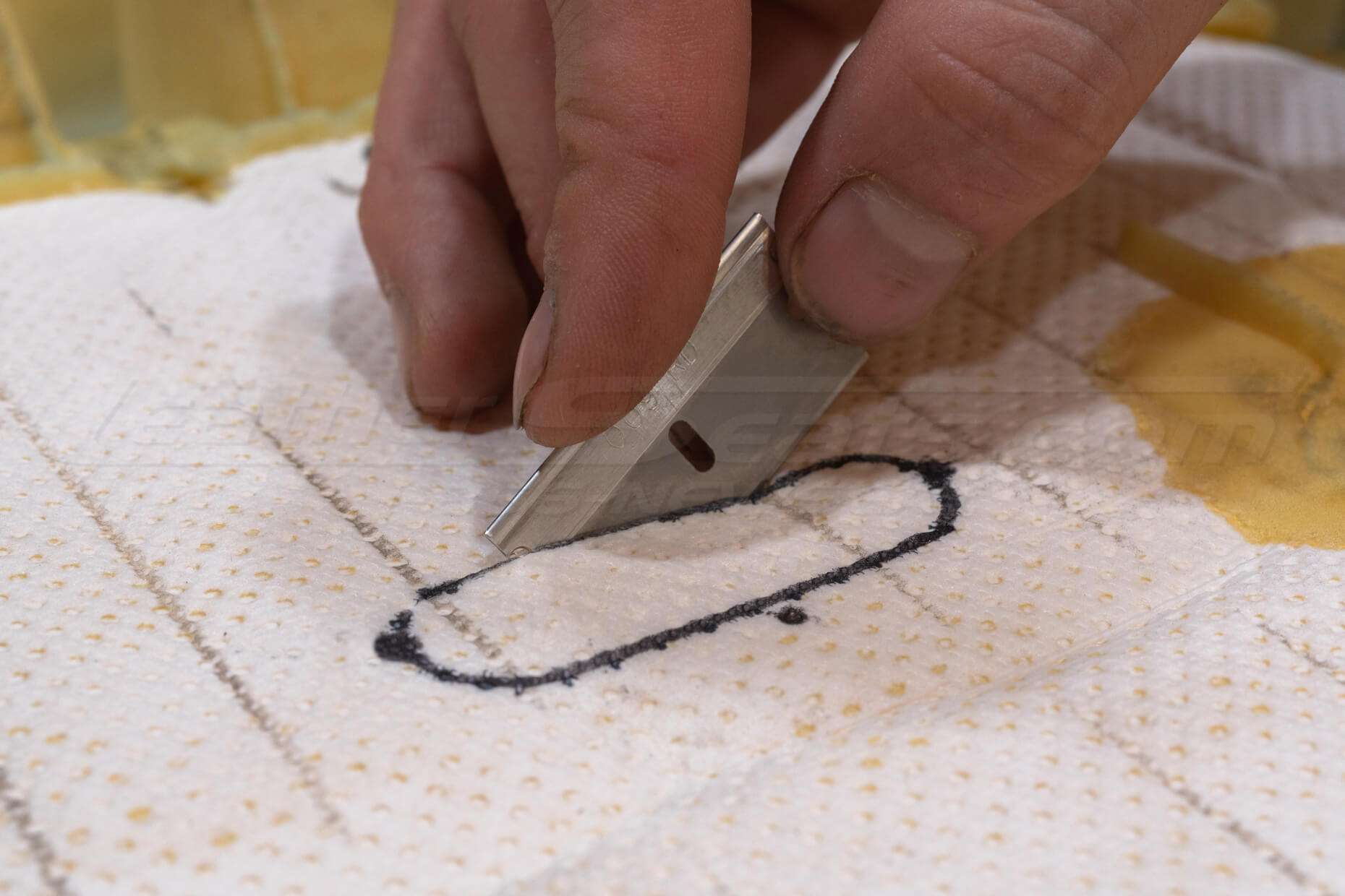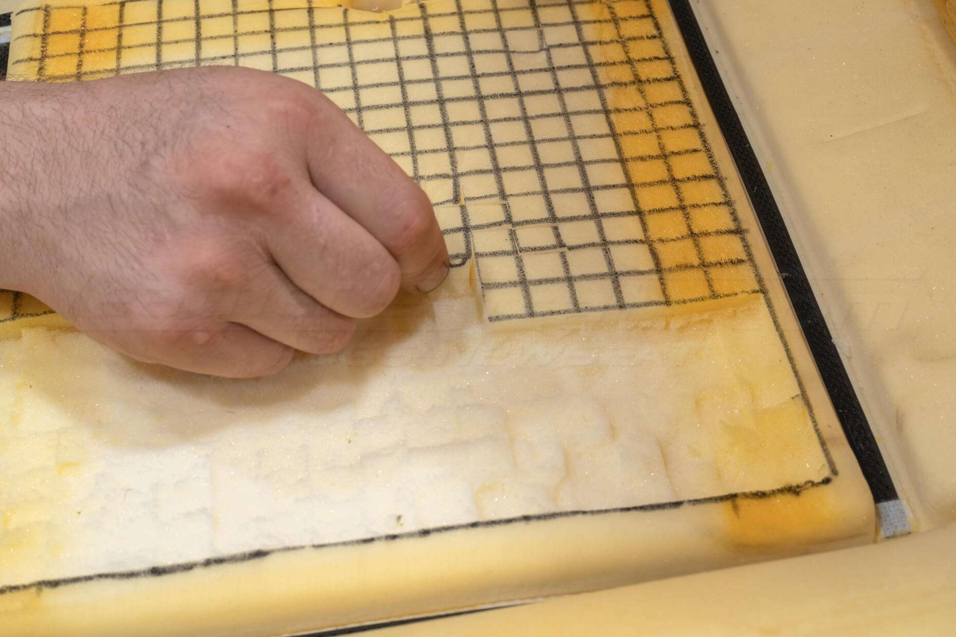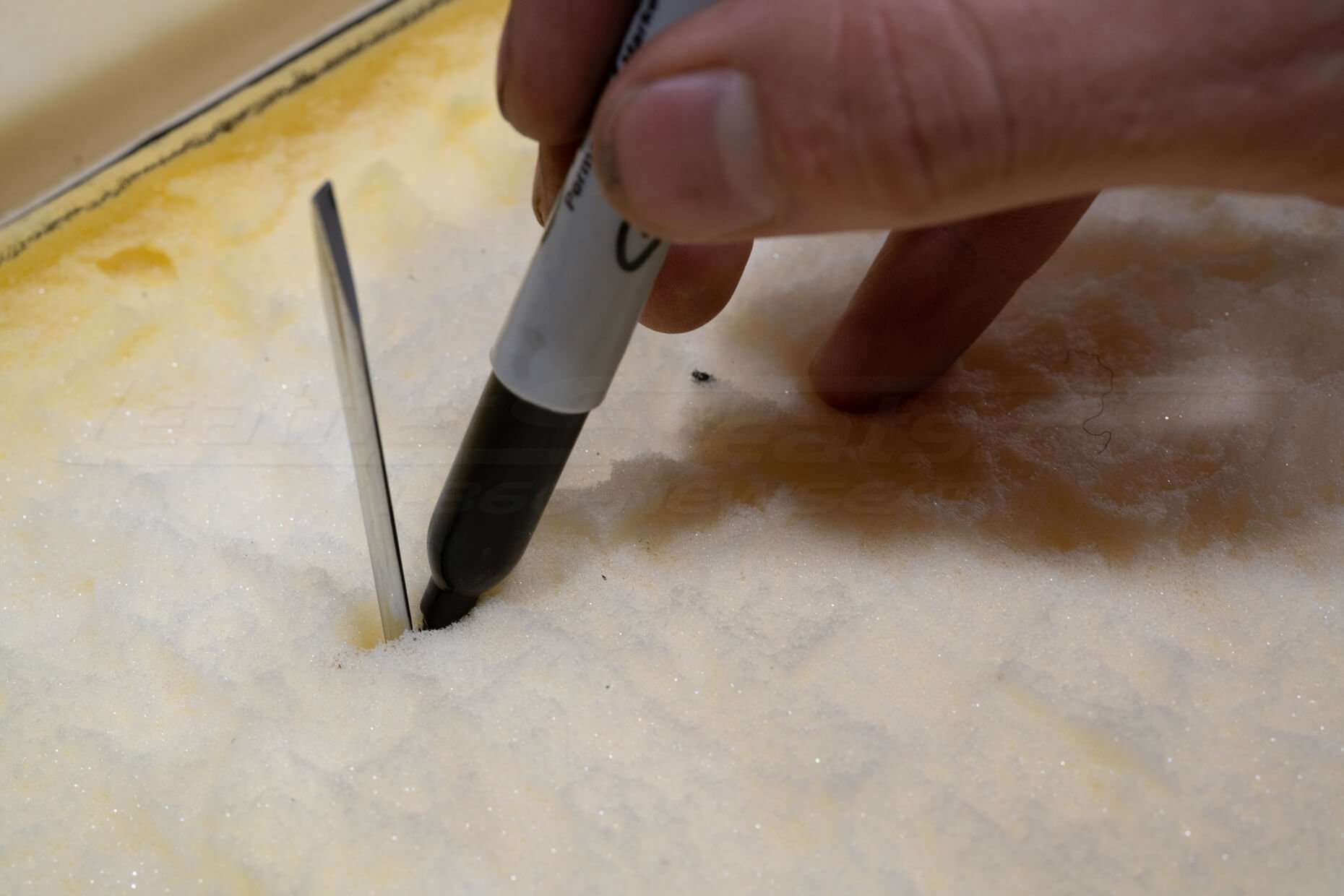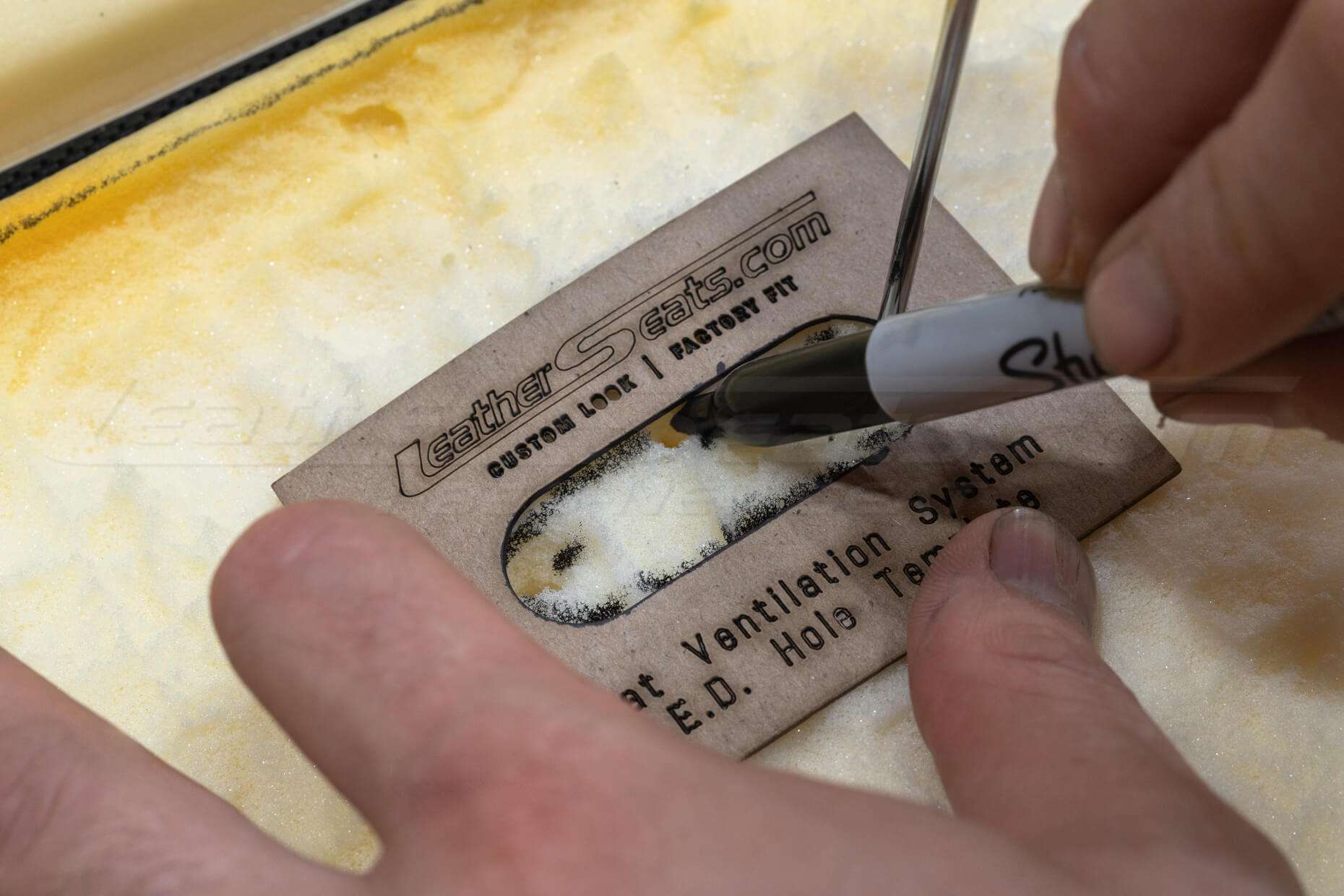 Once the placement of the air distribution pad is determined, trace where the pad will lie on the seat foam using our template or the pad as a guide.