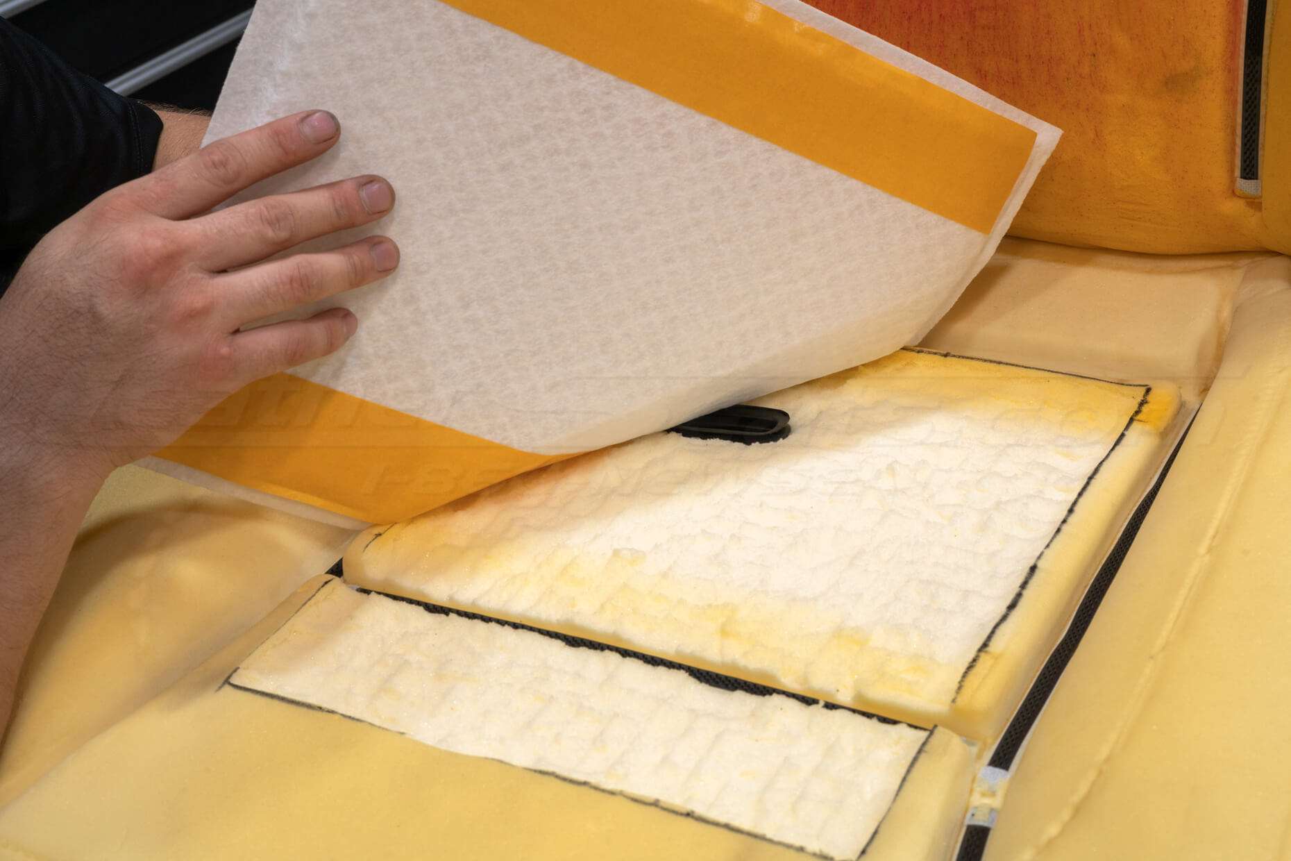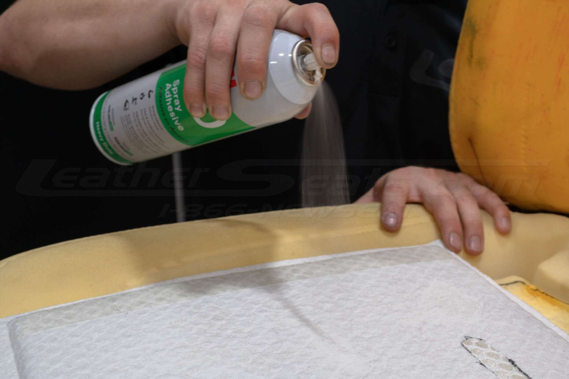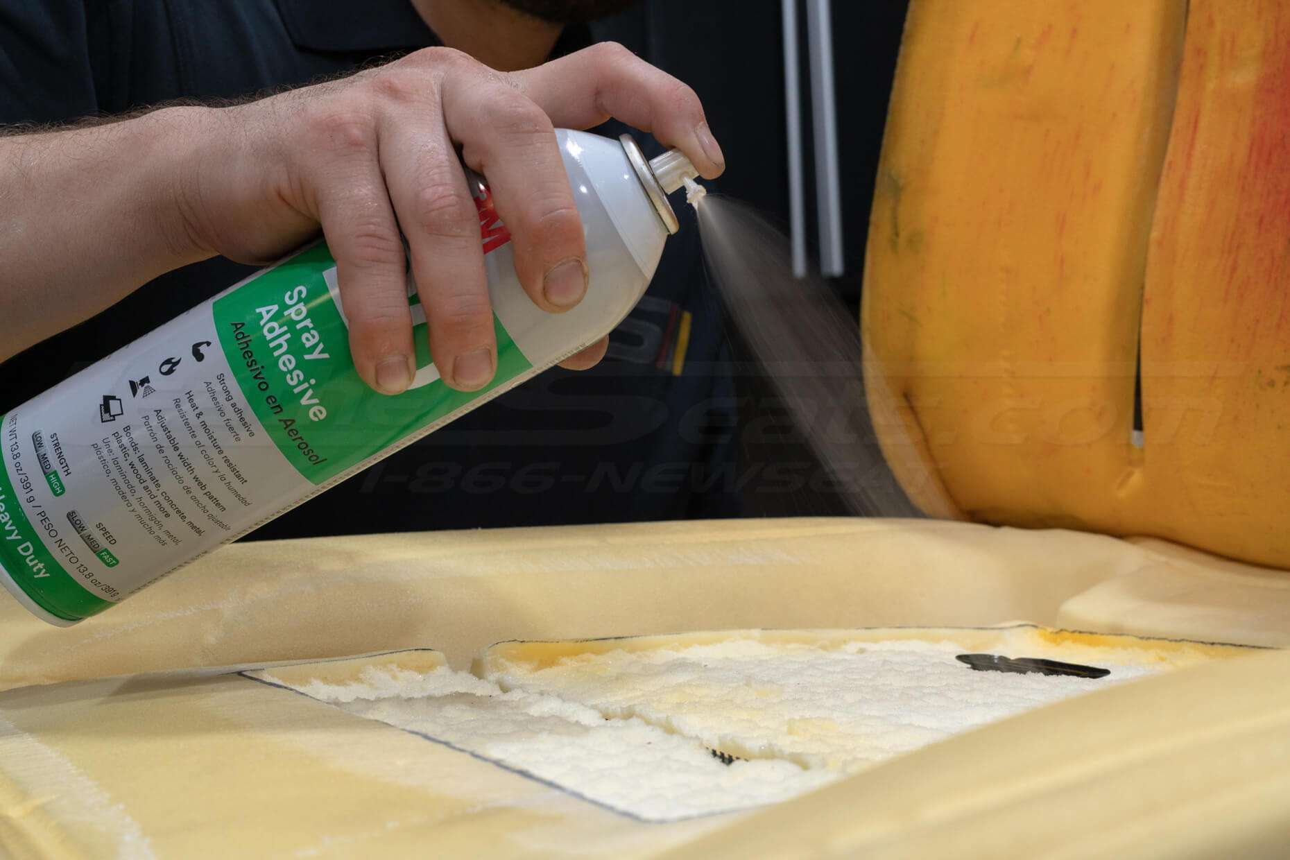 (Optional) Apply spray adhesive to seat foam and back of the distribution pad.