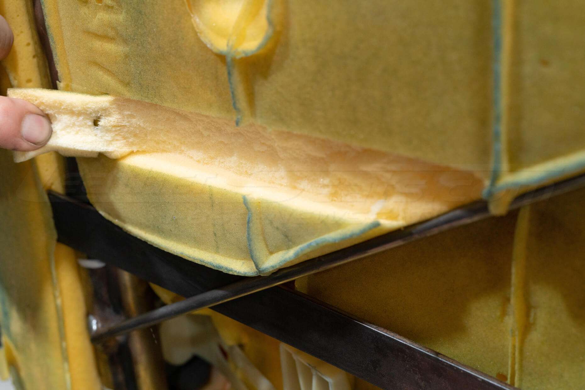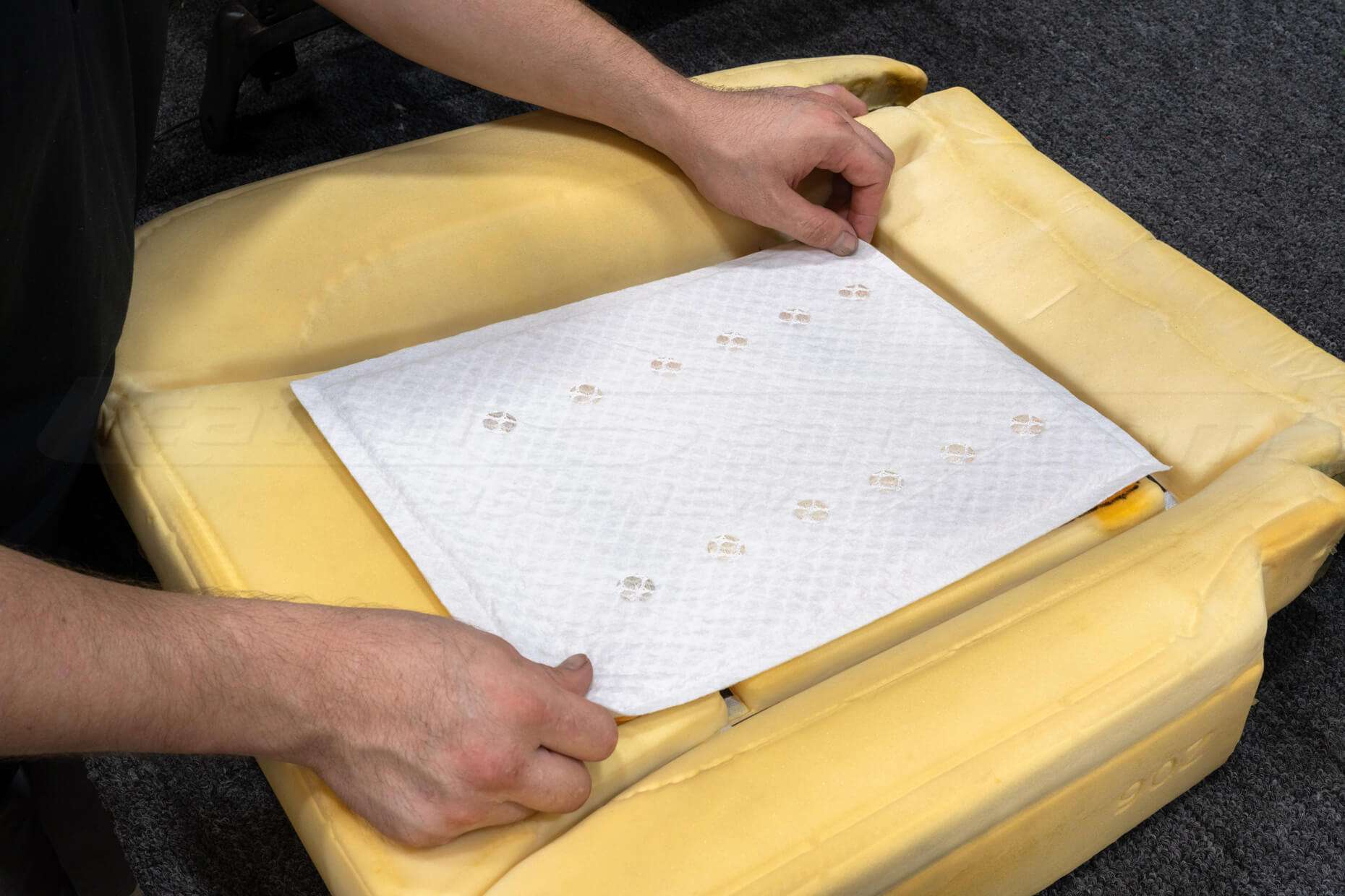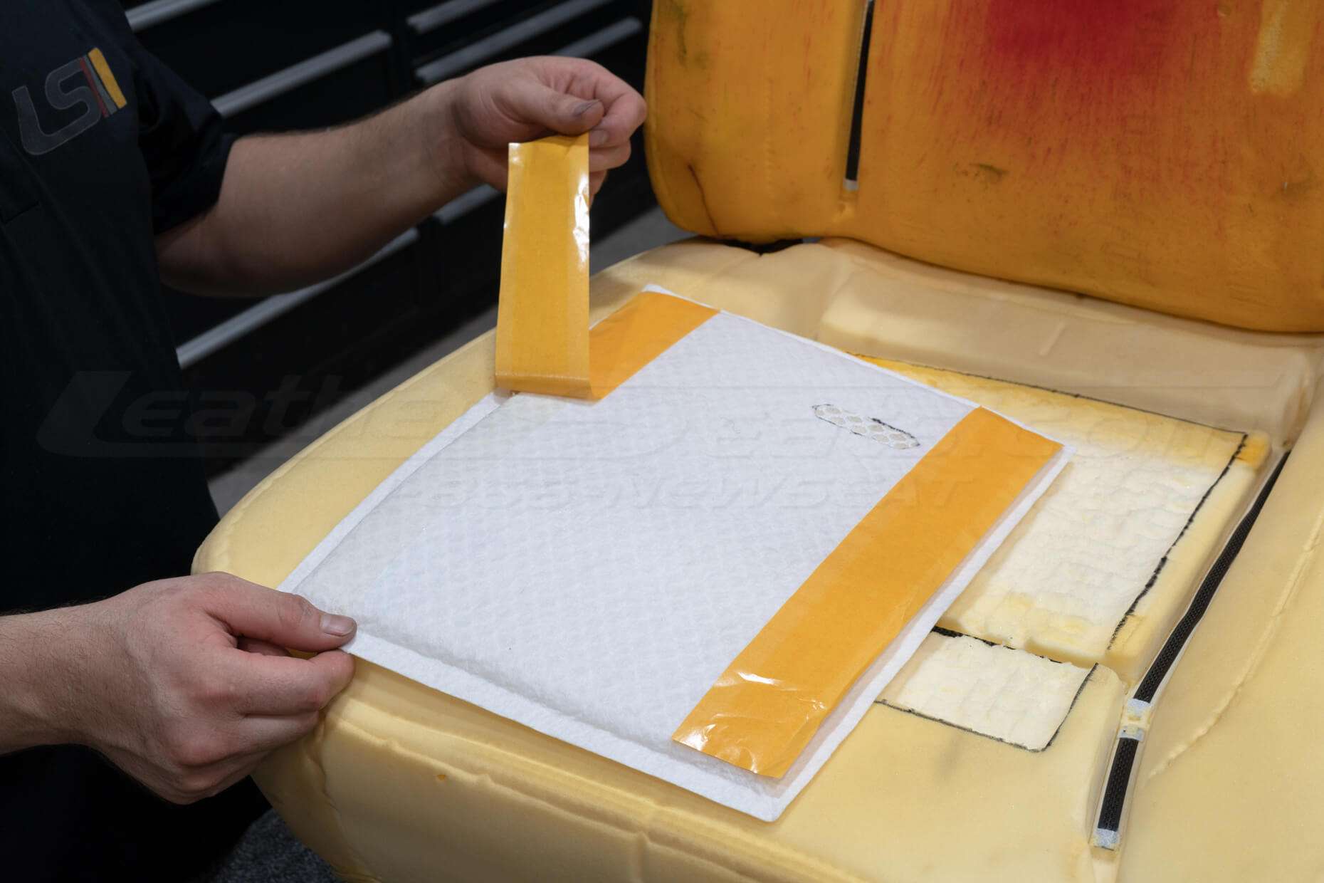 (Optional) Apply spray adhesive to seat foam and back of the distribution pad.