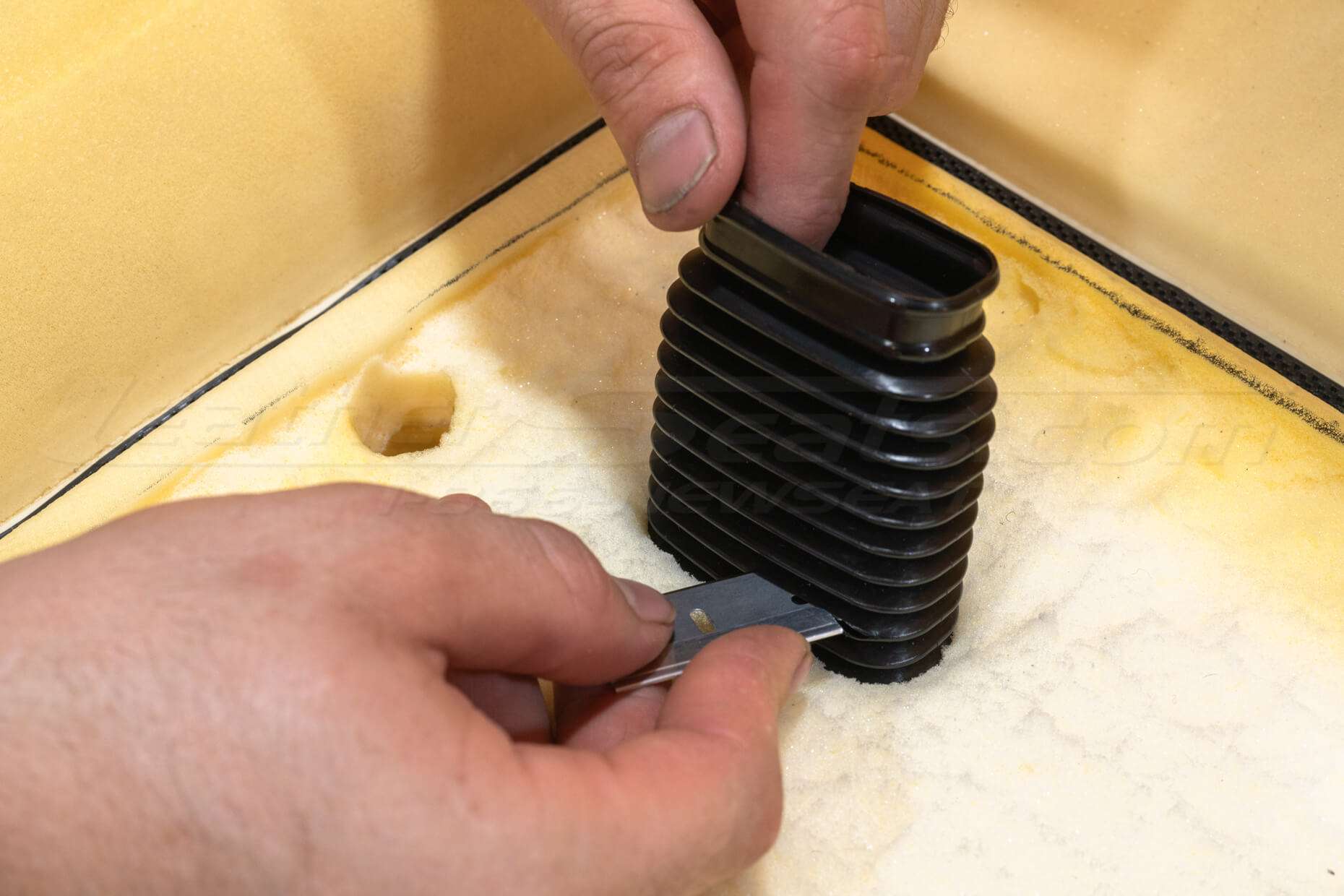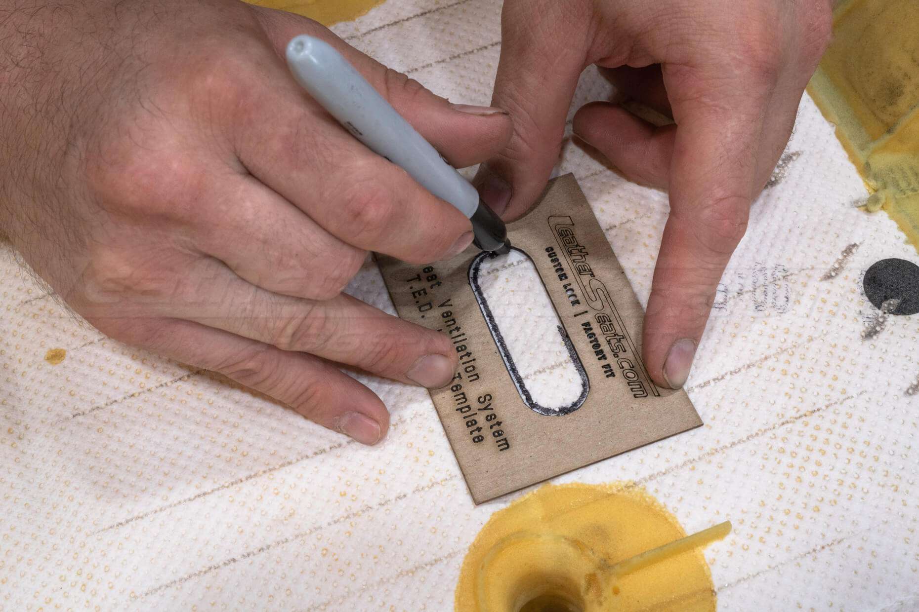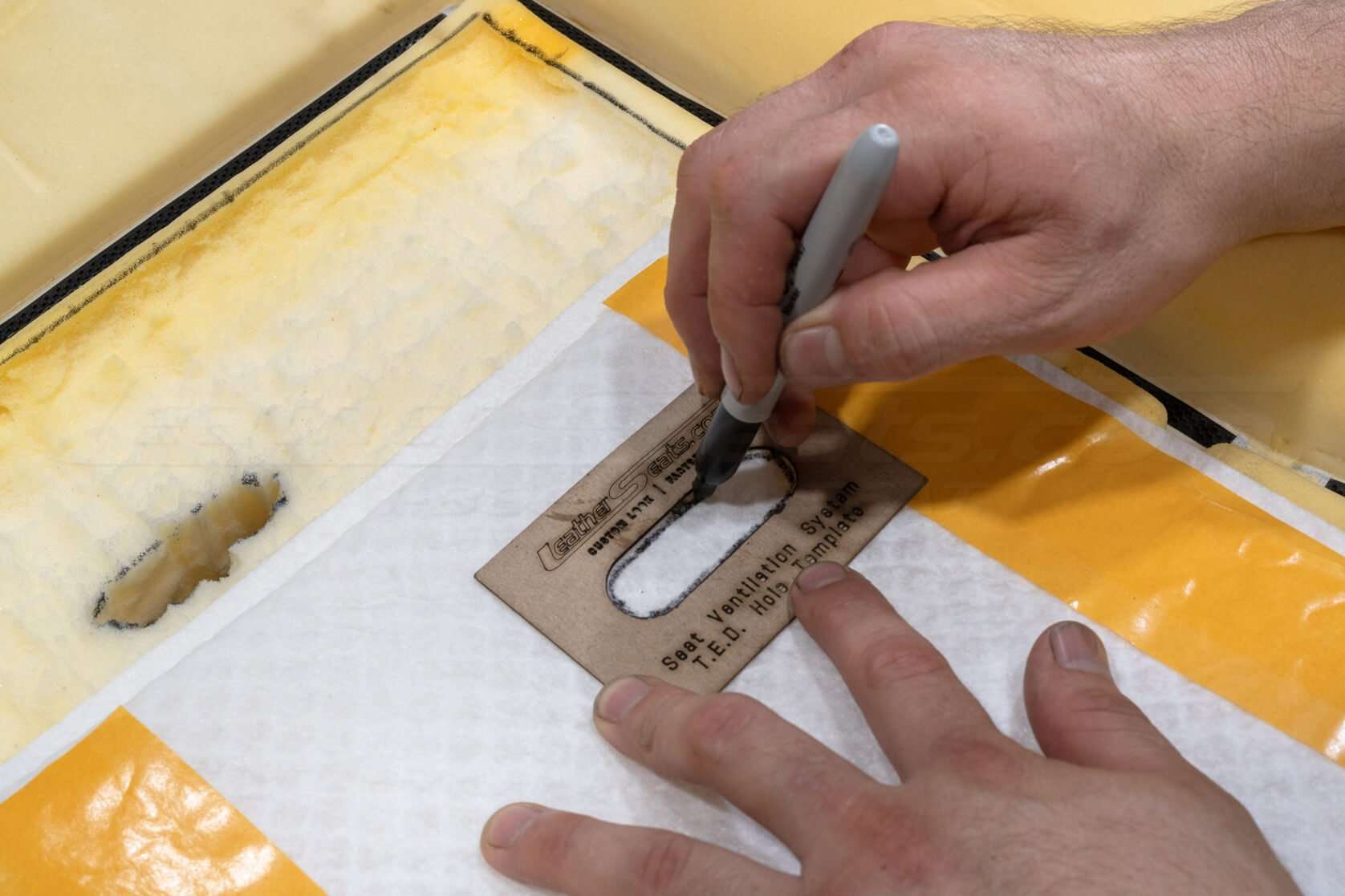 Use the TED hole template to trace the outline of the TED output on the seat foam.