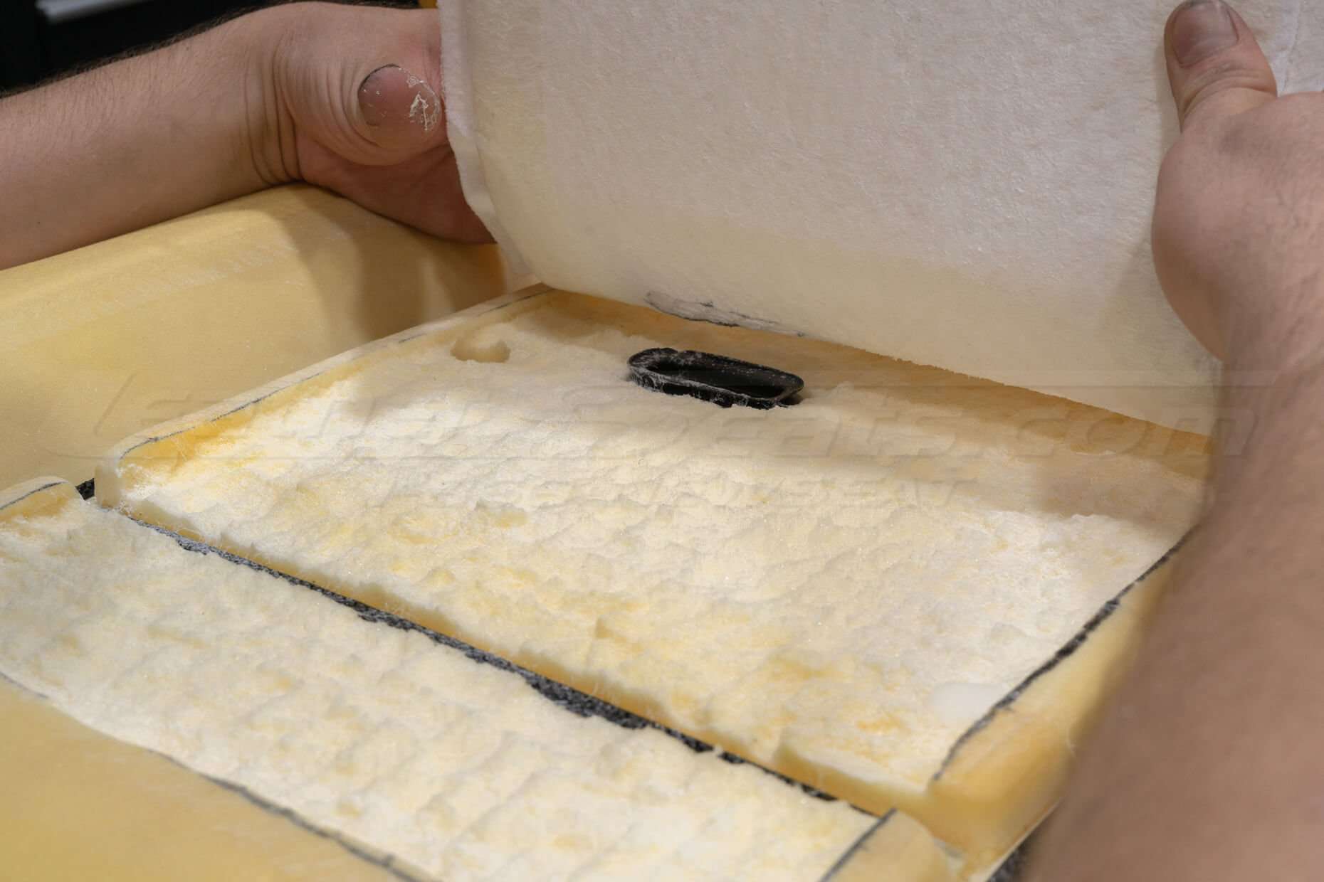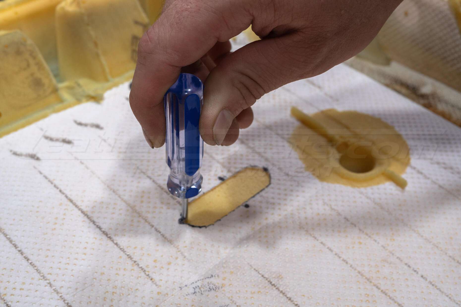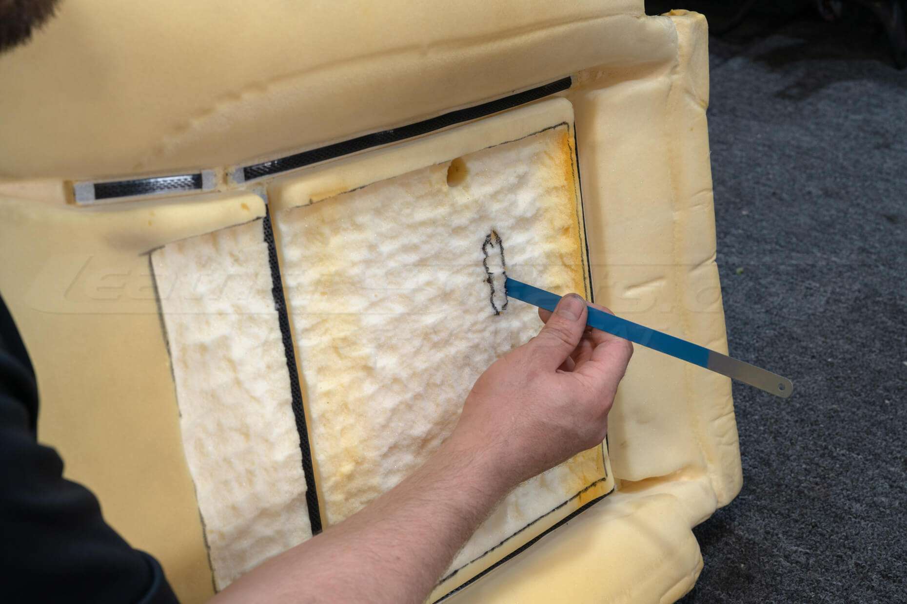 Use a router or razor blade to trench out the seat foam ⅜” to allow the distribution pad to lay flush with the seat foam.