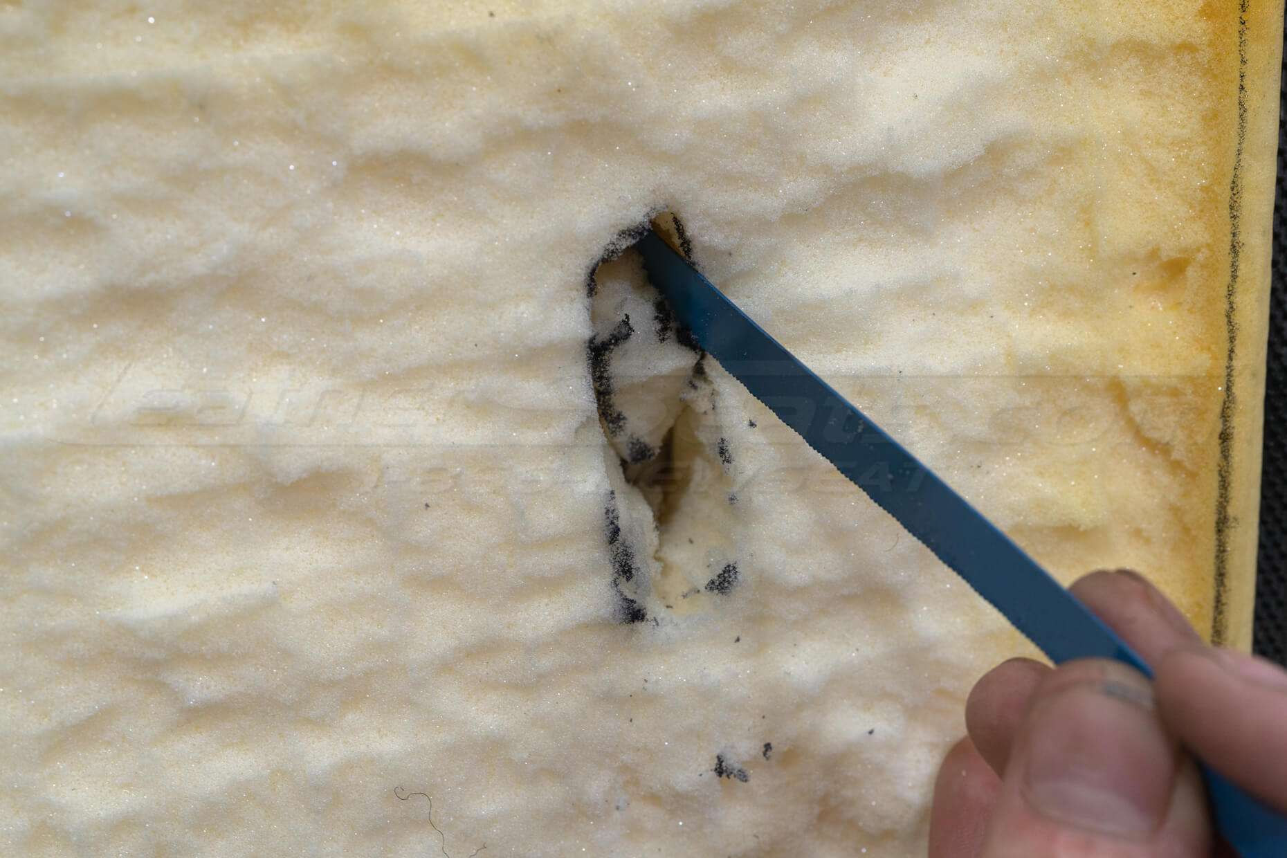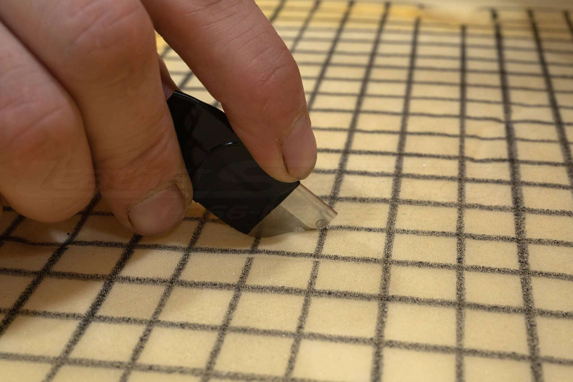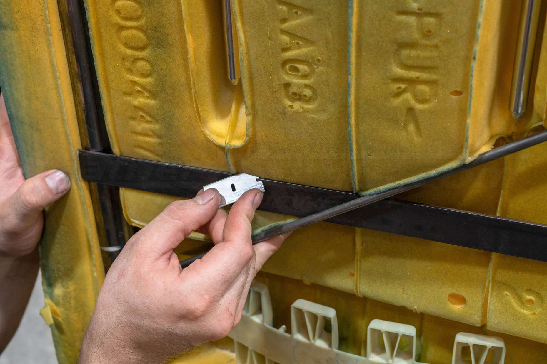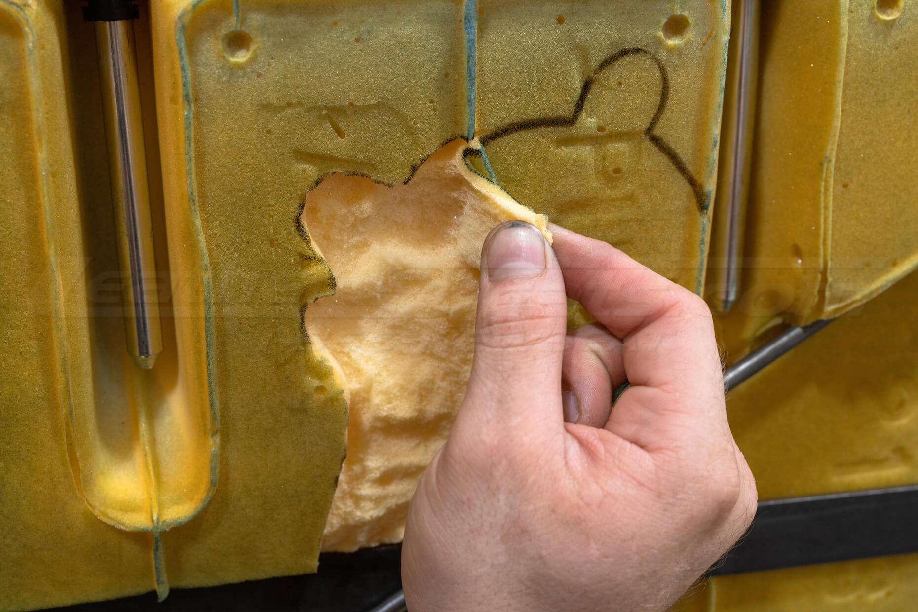 Use a router or razor blade to trench out the seat foam ⅜” to allow the distribution pad to lay flush with the seat foam.