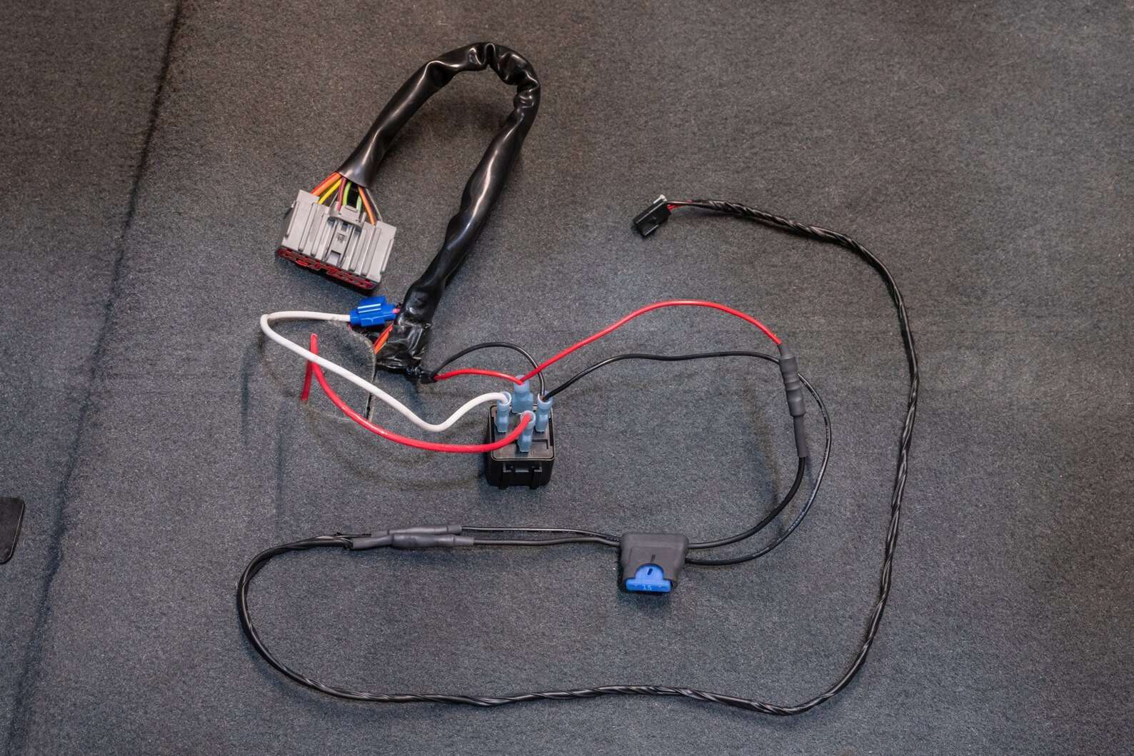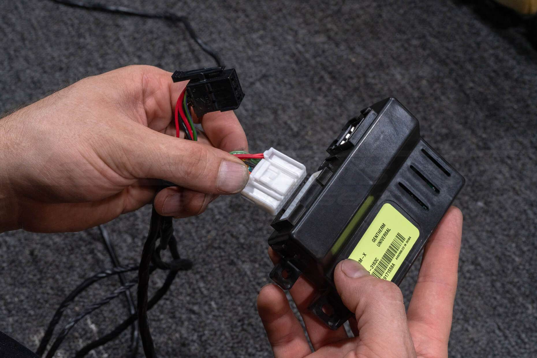 With all of the system components plugged in, connect the unit wiring harness to the power extension harness, and then connect the whole system to the 12V power source to bench test.