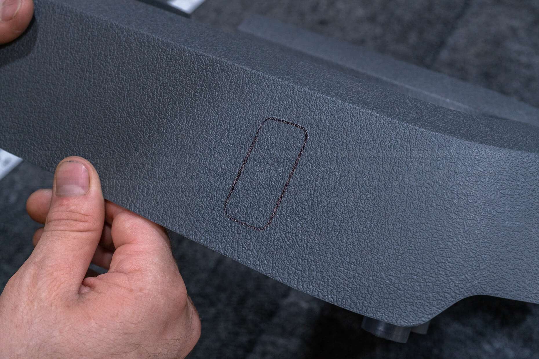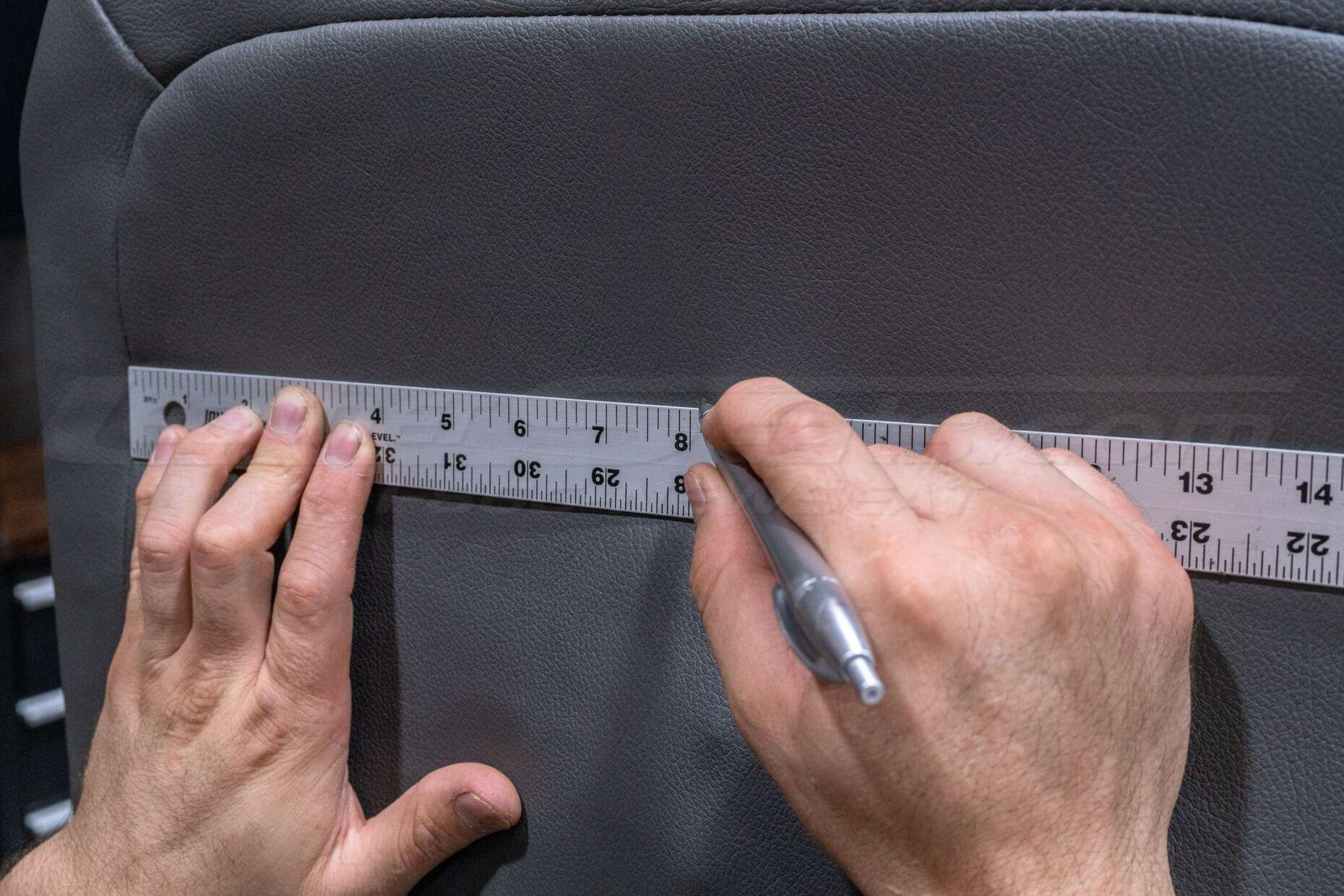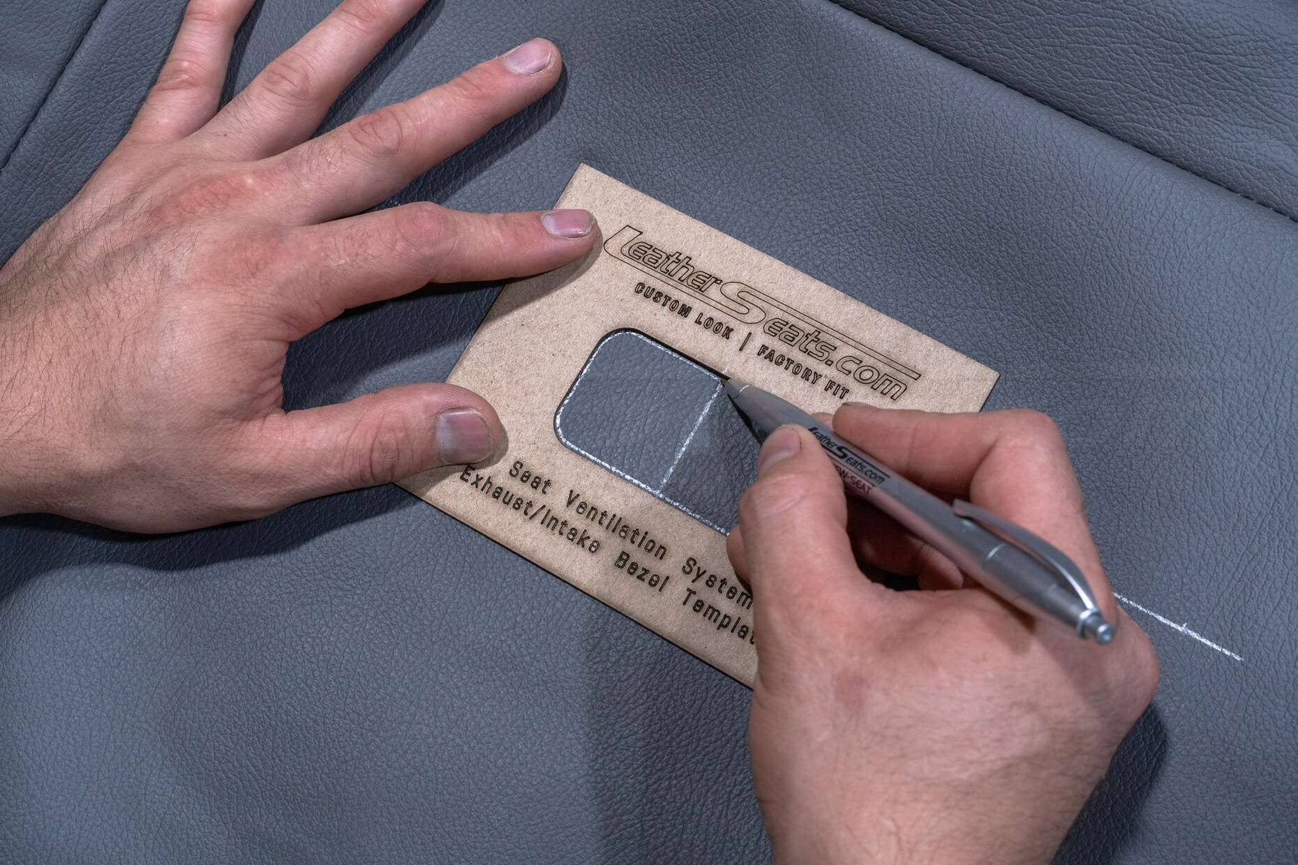 With the backrest cover installed, mark the placement of the bezel so that it sits directly in line with the blower. Use the included bezel template to trace the hole’s outline.