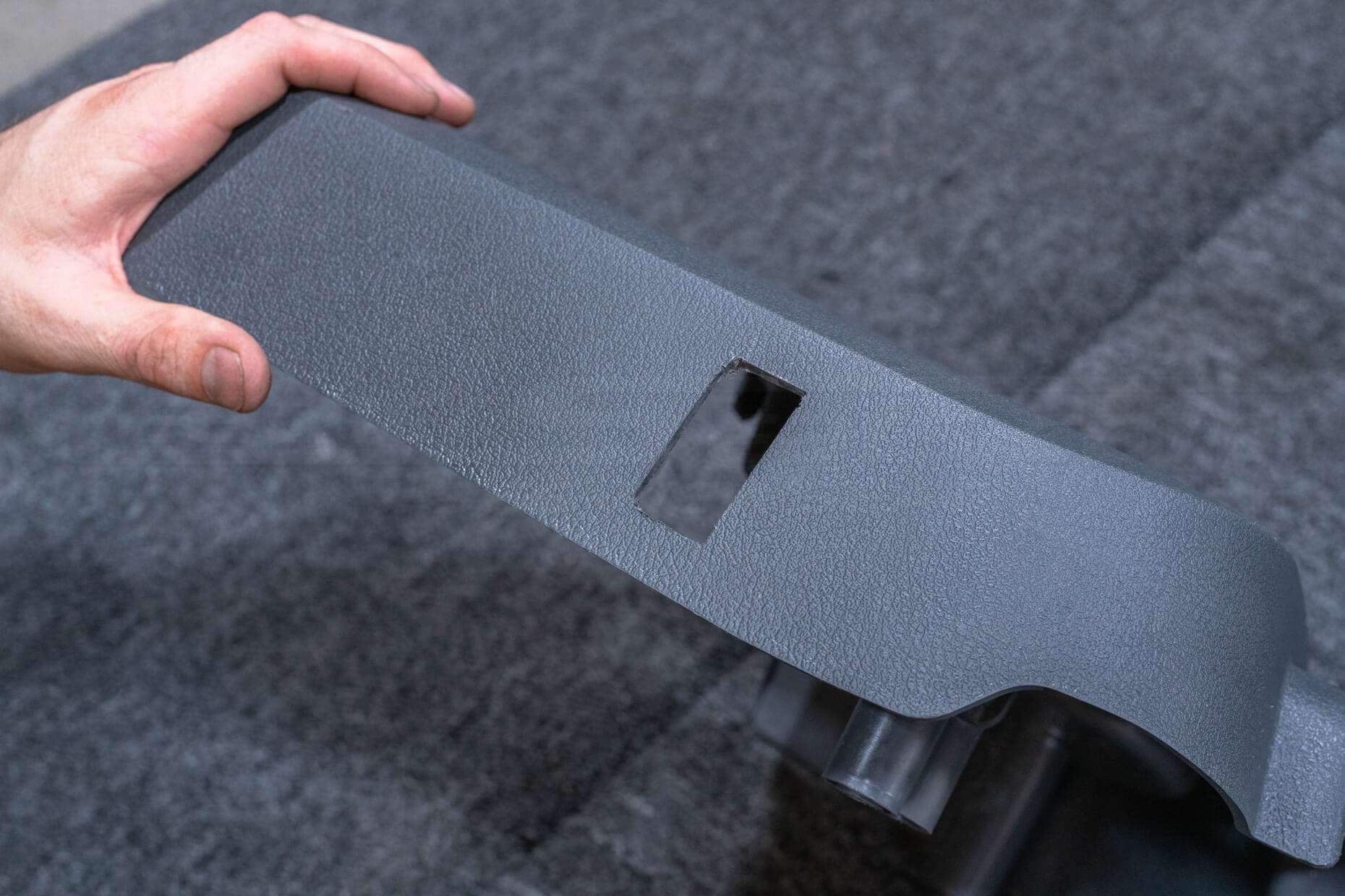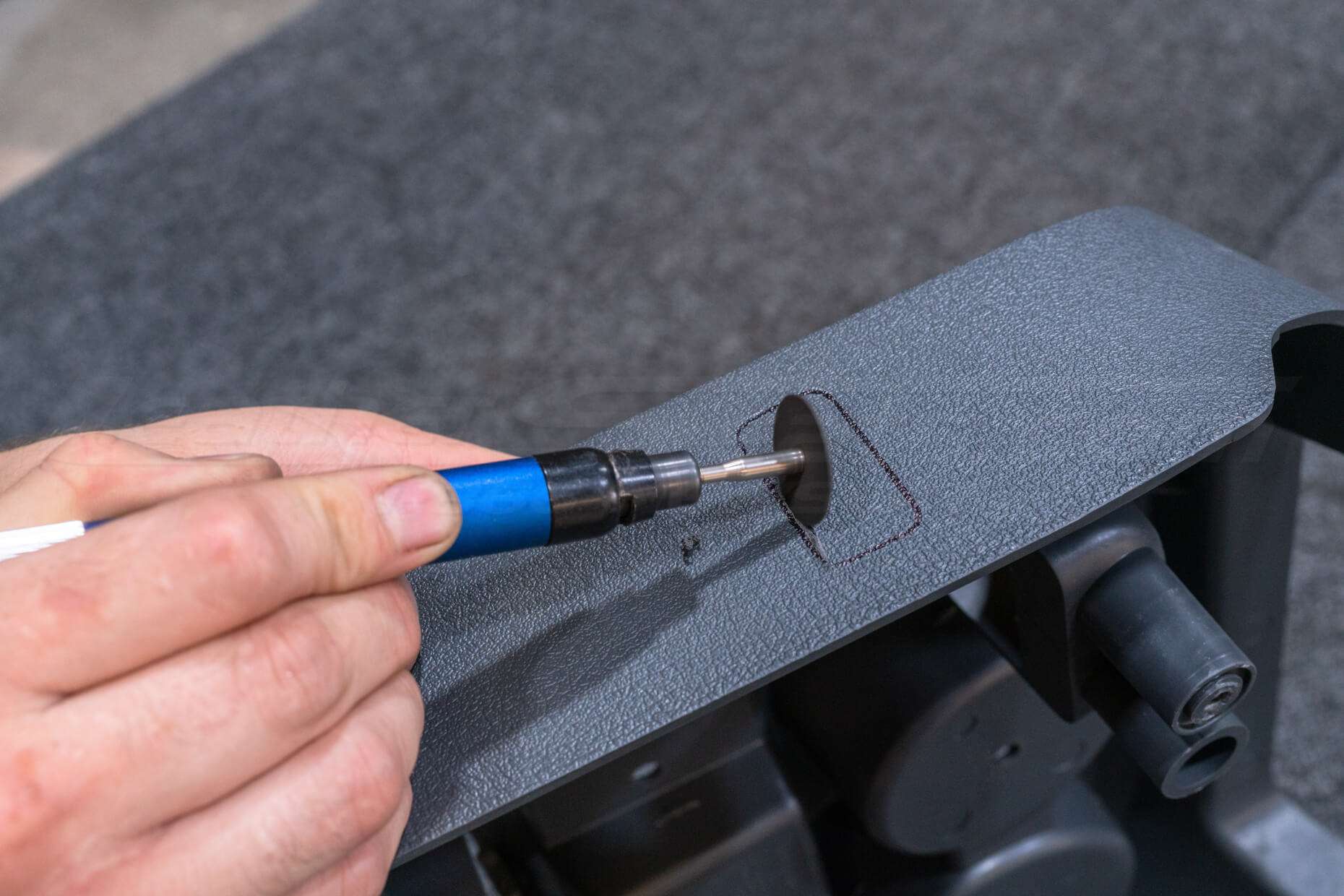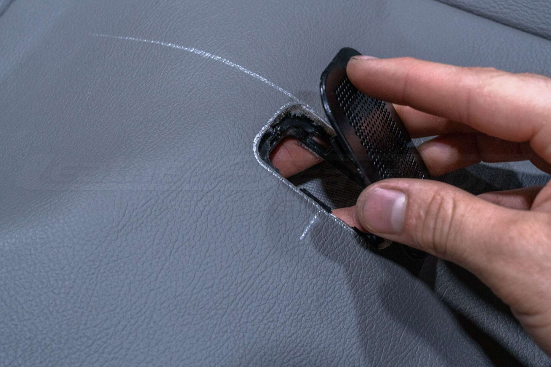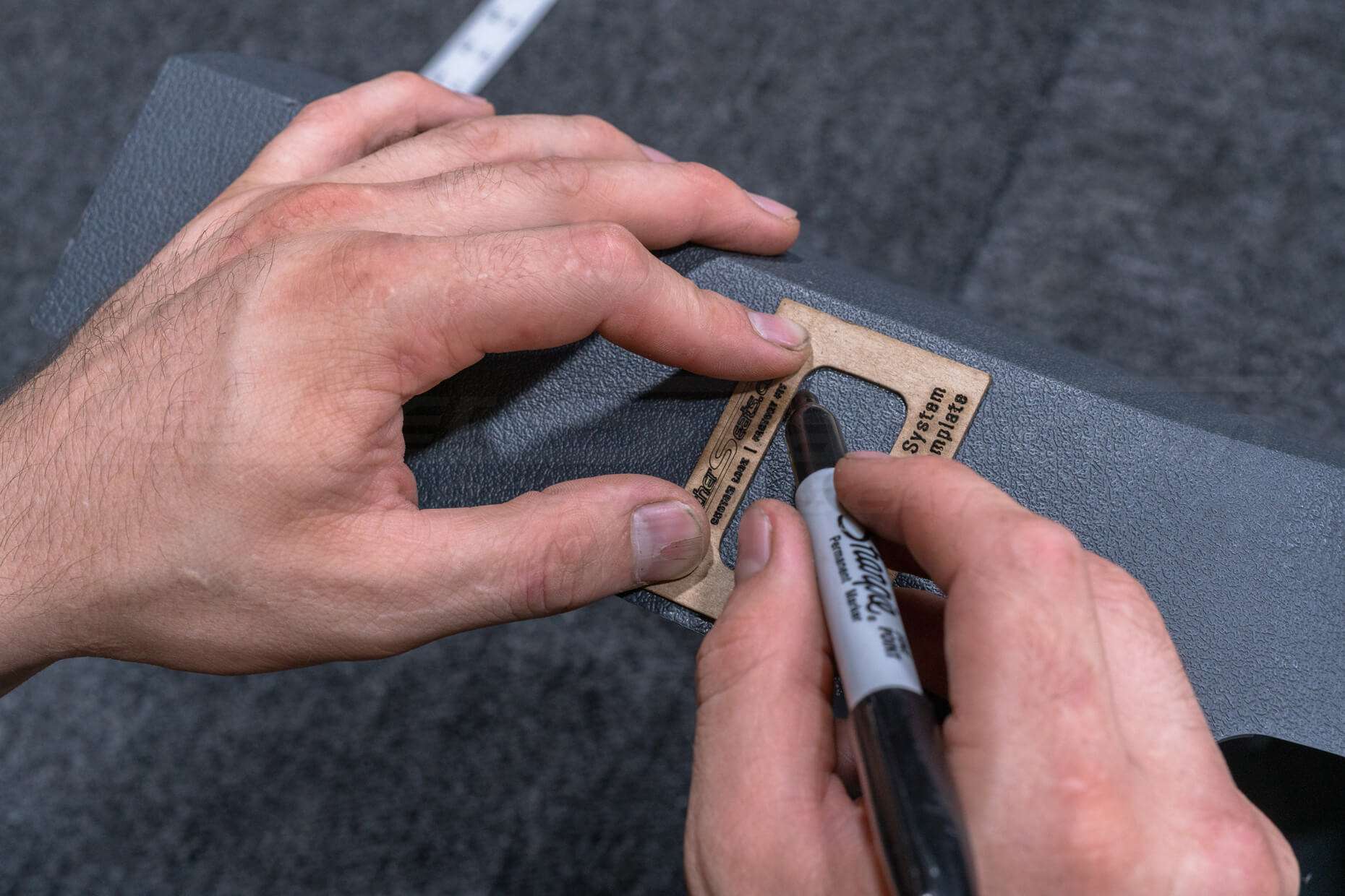 With the backrest cover installed, mark the placement of the bezel so that it sits directly in line with the blower. Use the included bezel template to trace the hole’s outline.
