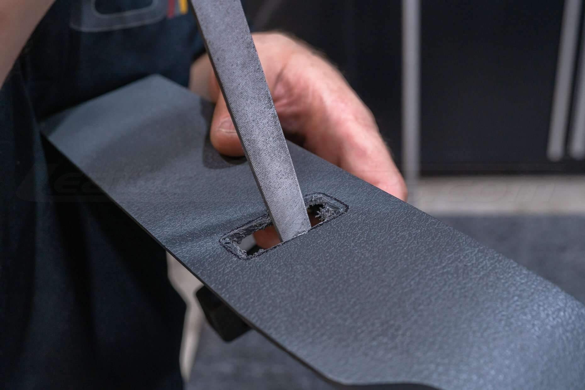 Remove the backrest cover, cut the hole, and install the intake bezel.
