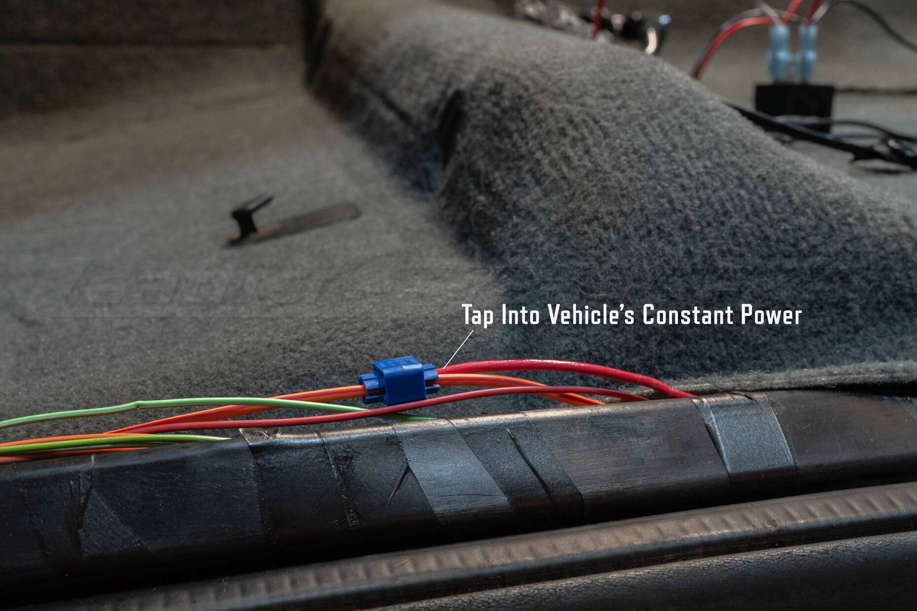 Tap a wire into a constant 12v power source rated for a minimum of 15 amps for one unit, or 30 amps for two units. Connect your 12v constant tap wire to pin 30 on the included relay.