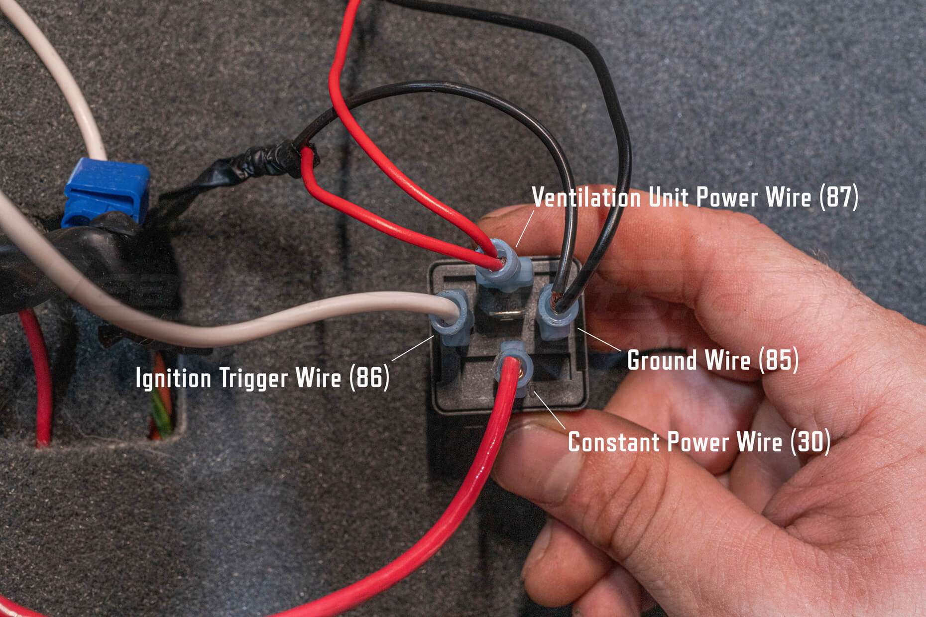 Connect pin 85 of the relay and the ground wire from the Sanctum system’s power harness to a suitable ground on the chassis or to an existing ground wire in the vehicle.