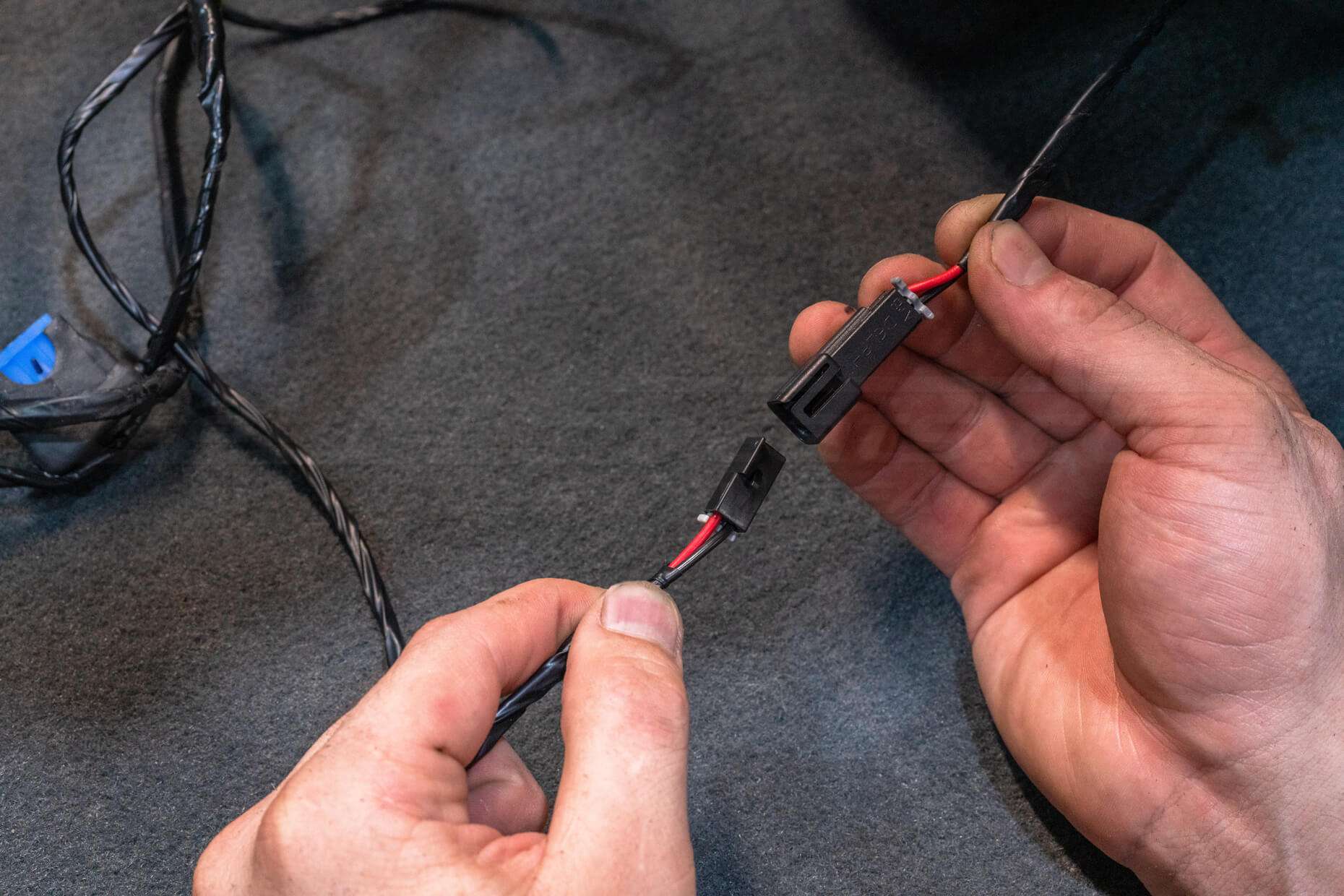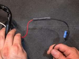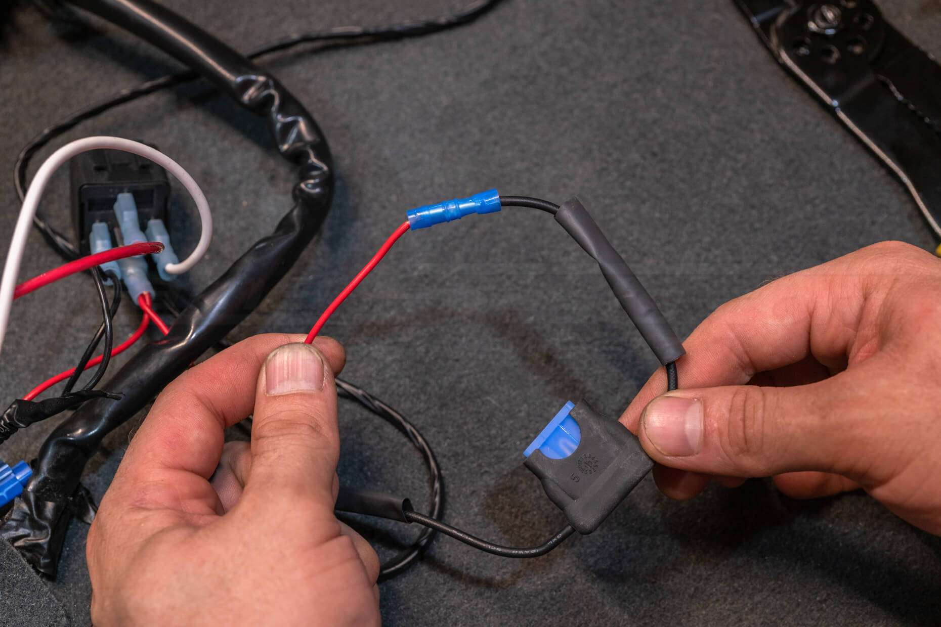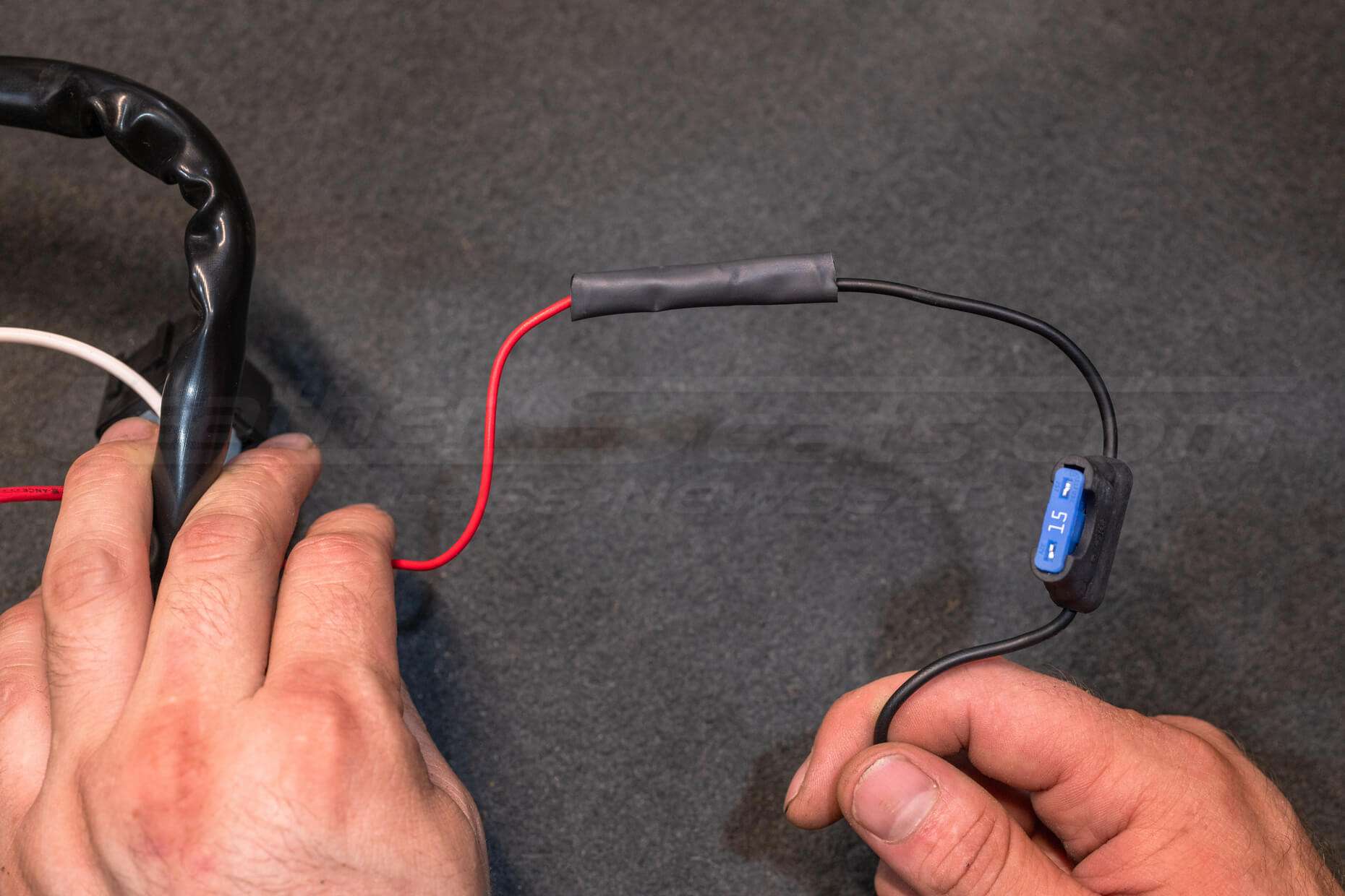Connect the included 15A inline fuse to the positive wire on the power wiring harness.