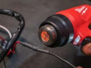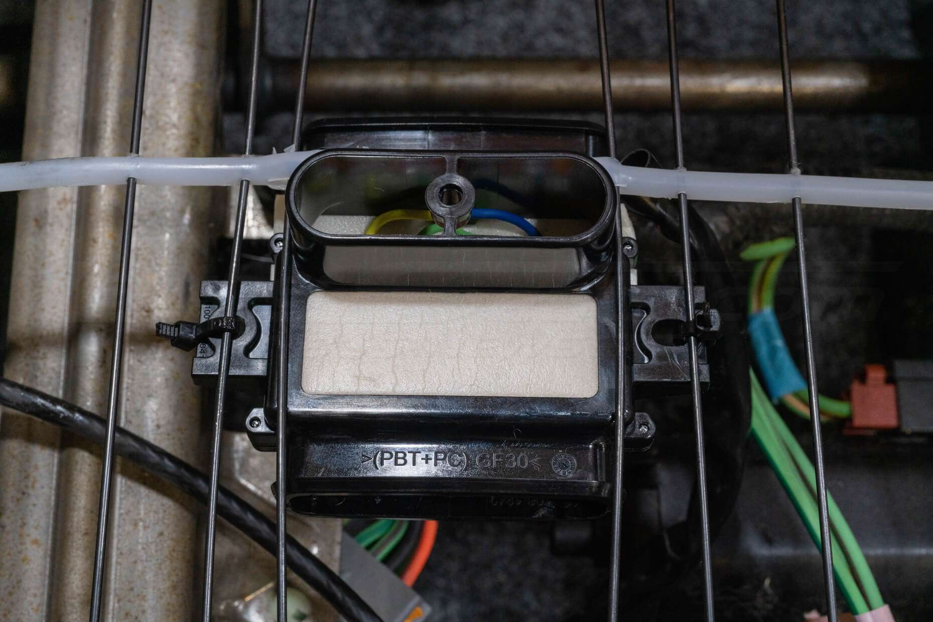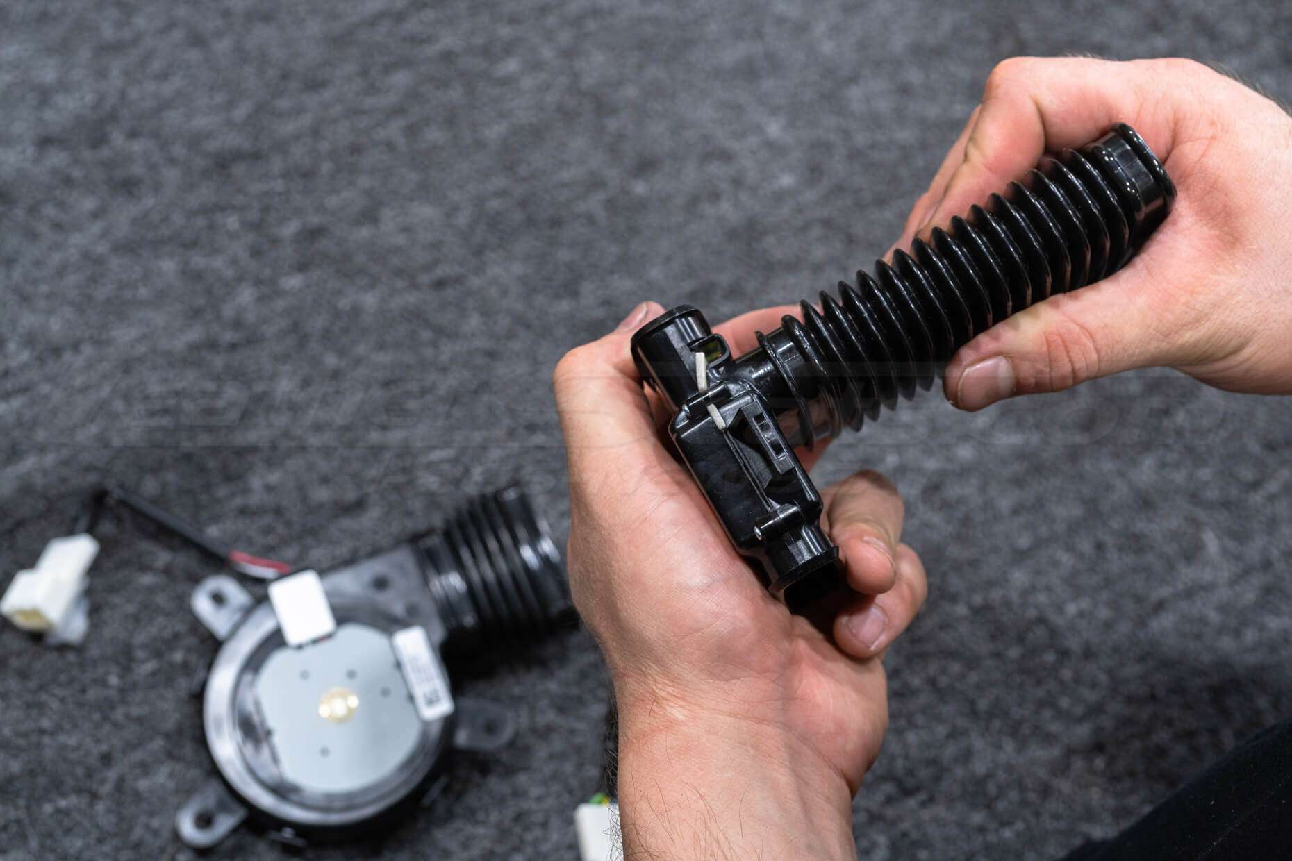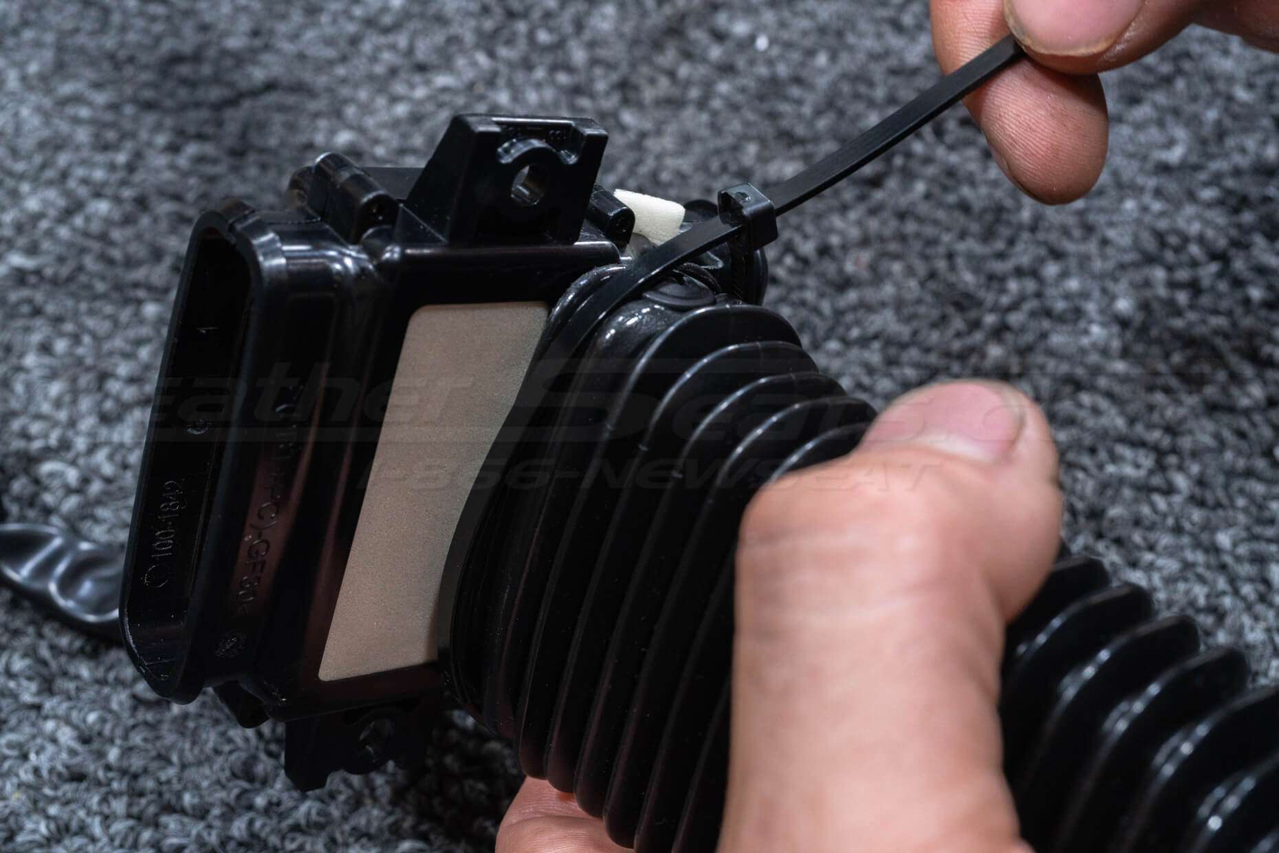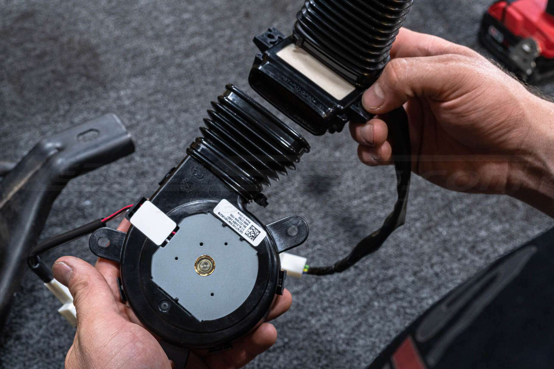 Trim a short piece of duct tubing to connect the TED unit and blower and attach a longer piece of tubing to the TED’s output that will pass through the seat foam. For the output, we recommend using stinger screws and/or zip ties to secure these attachment points.