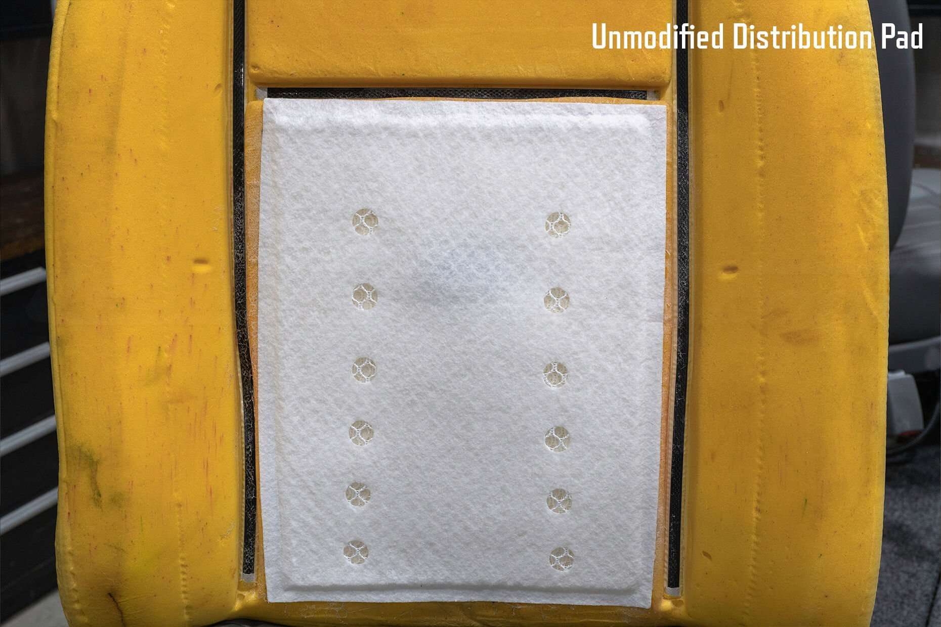 The outer layer of the distribution pad can be modified to optimize the airflow in specific areas of the seat.