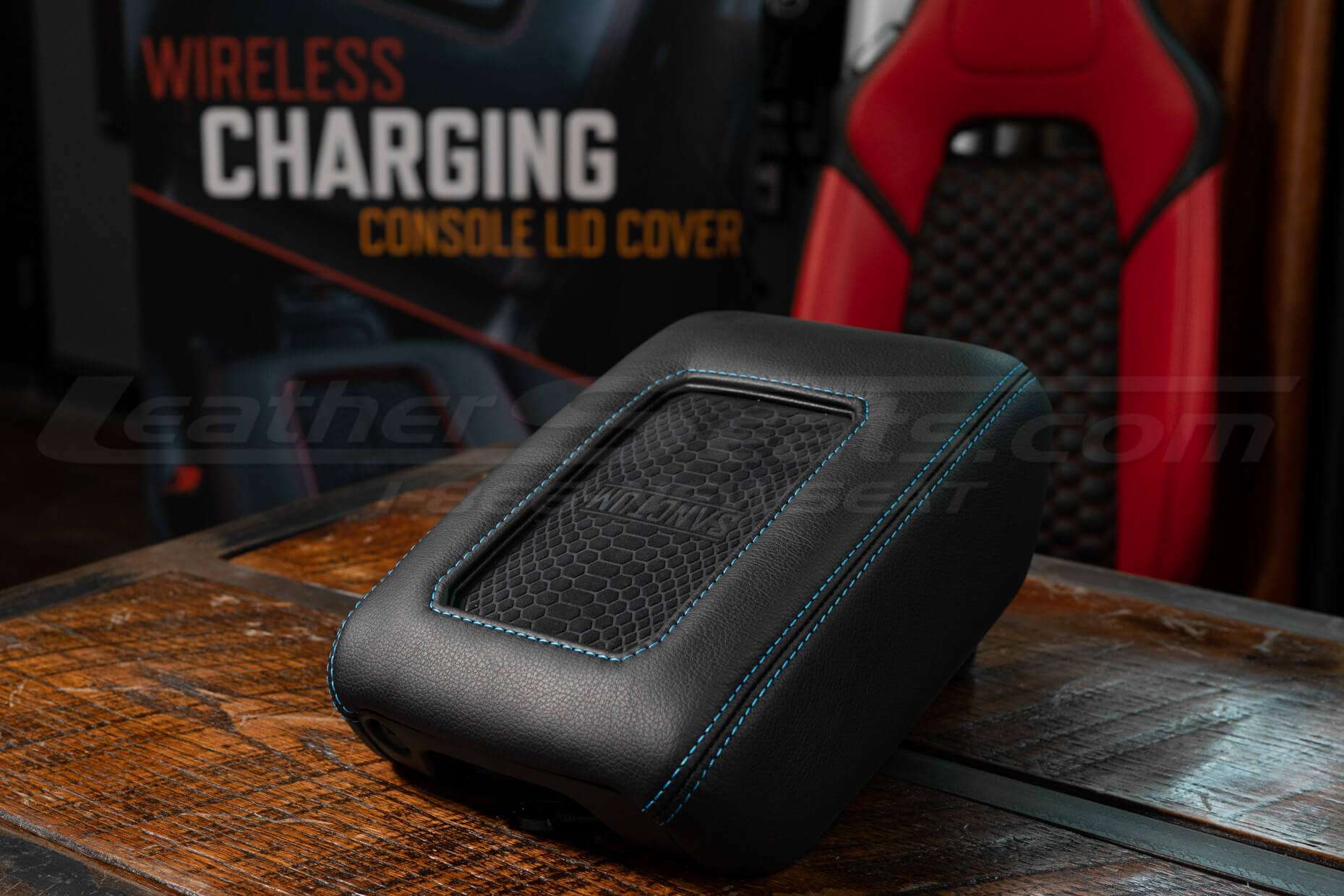 Here is what you need to know: This Jeep Wrangler JL wireless charging console lid upgrade is awesome. It will charge most smartphones that support QI wireless charging protocol and works with both Android and iOS. It will upgrade your factory vinyl console to the leather color of your choice as well as stitching and the accent trim ring. The standard charging pad is designed to fit most phone sizes but we do have a larger size for extra-large phones (be sure to factor in your phone case). Also, did we mention that it’s awesome?
