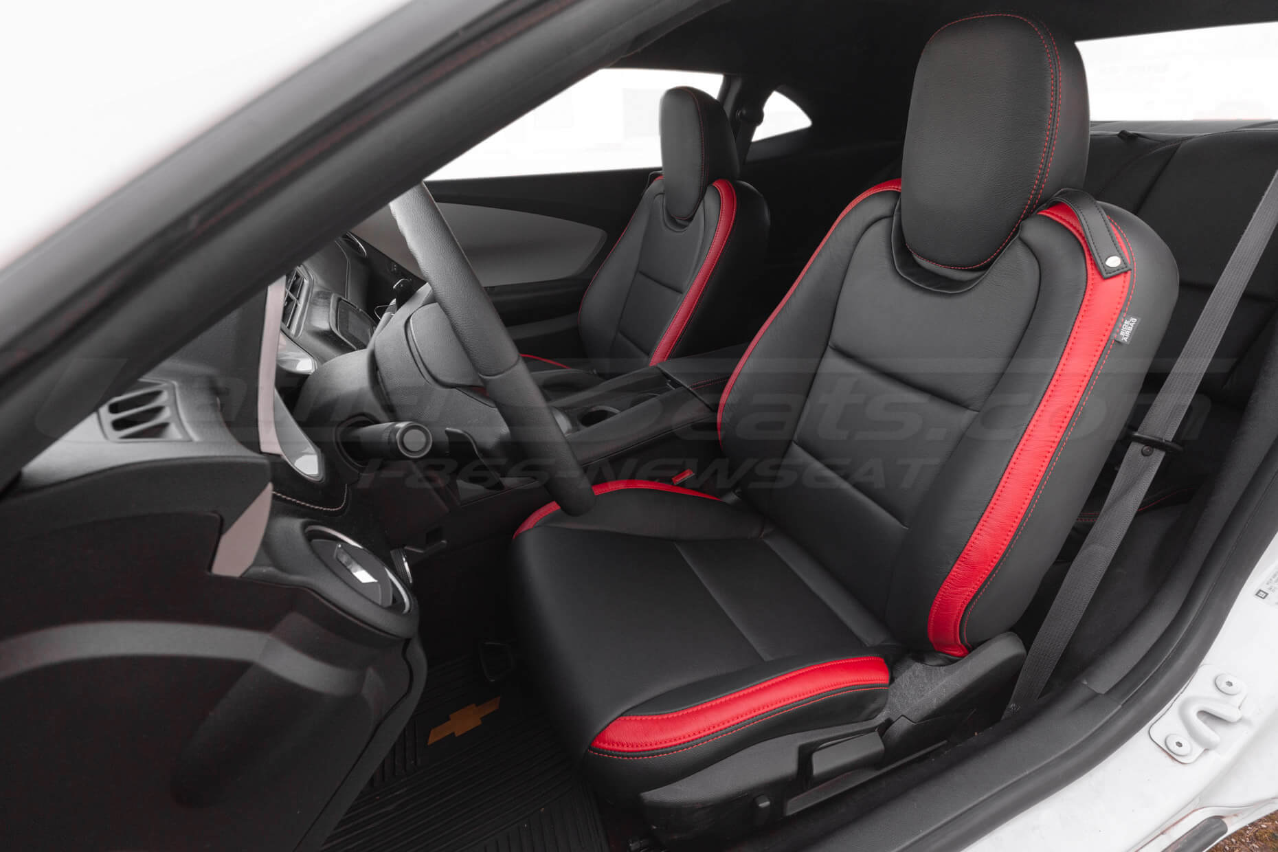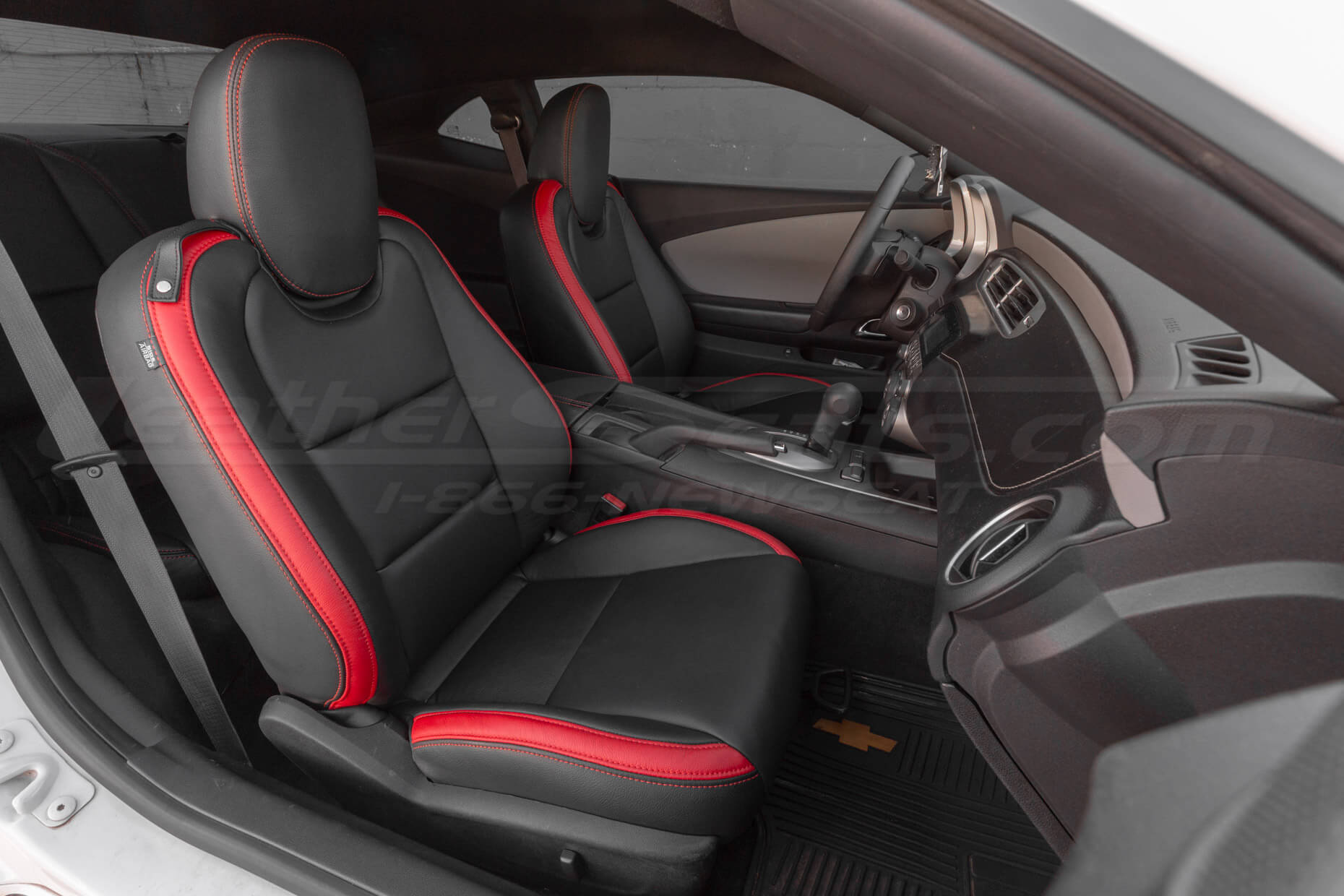 This package was designed specifically for the 5th Gen Chevrolet Camaro seats and is a great choice for anyone looking to upgrade from factory cloth or customize their seats to fit their own personal style. The package includes replacement covers for both the front and rear seats, giving your entire vehicle a consistent color, grain, and feel. Check out our Leather Content Diagrams . to see the different combinations of leather and vinyl we offer, with options all the way up to 100% leather.