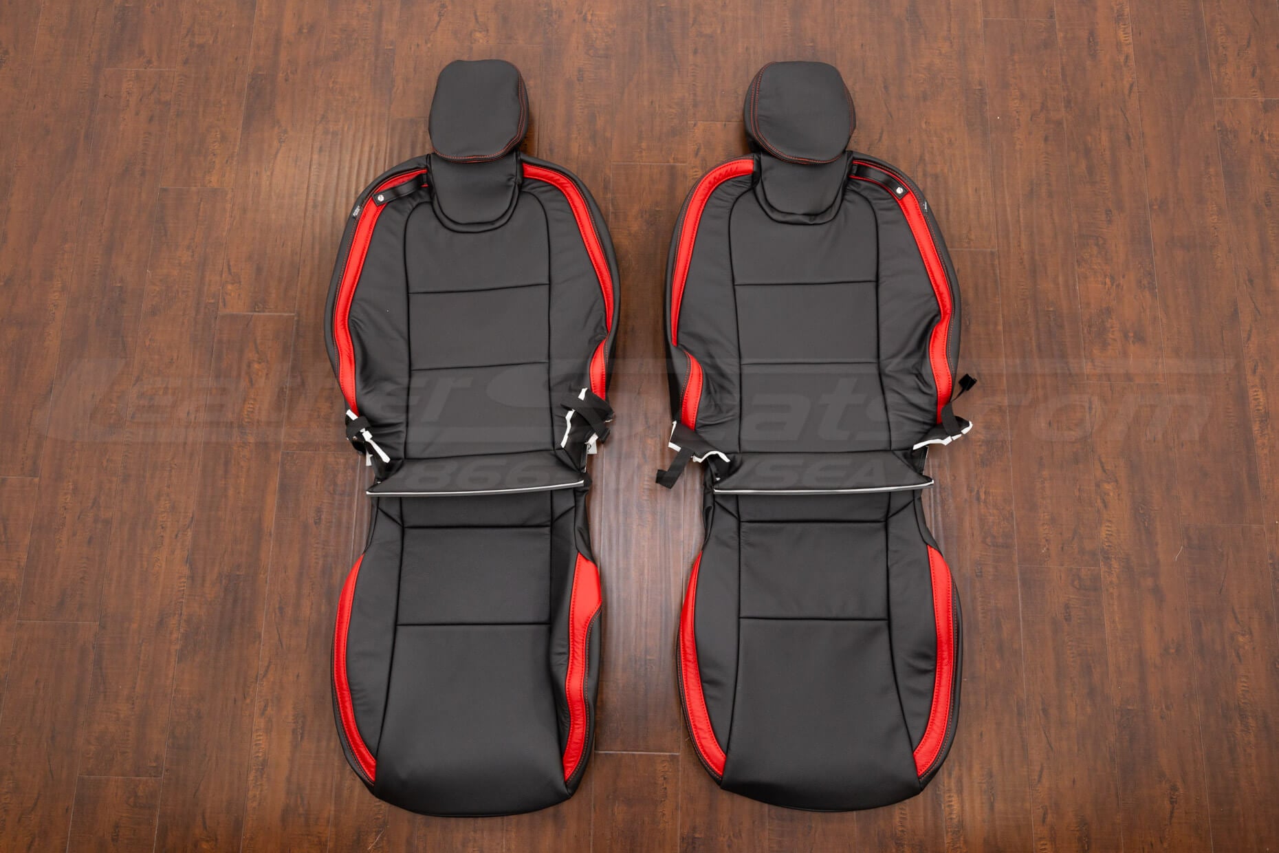 For a clean, custom look, this package comes pre-configured in Two-Tone Black with Bright Red Wings and contrast Bright Red stitching. We offer perforation upon request. You can also order a Leather Console Lid Cover, Shift Boot Upholstery and Door Armrest Upholstery to match the seat covers and complete the transformation.