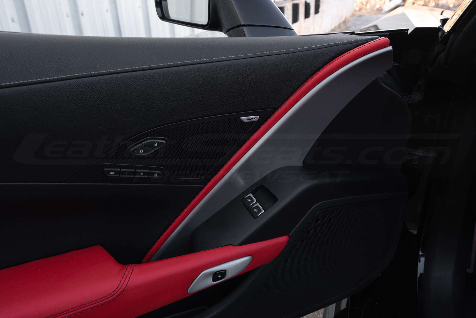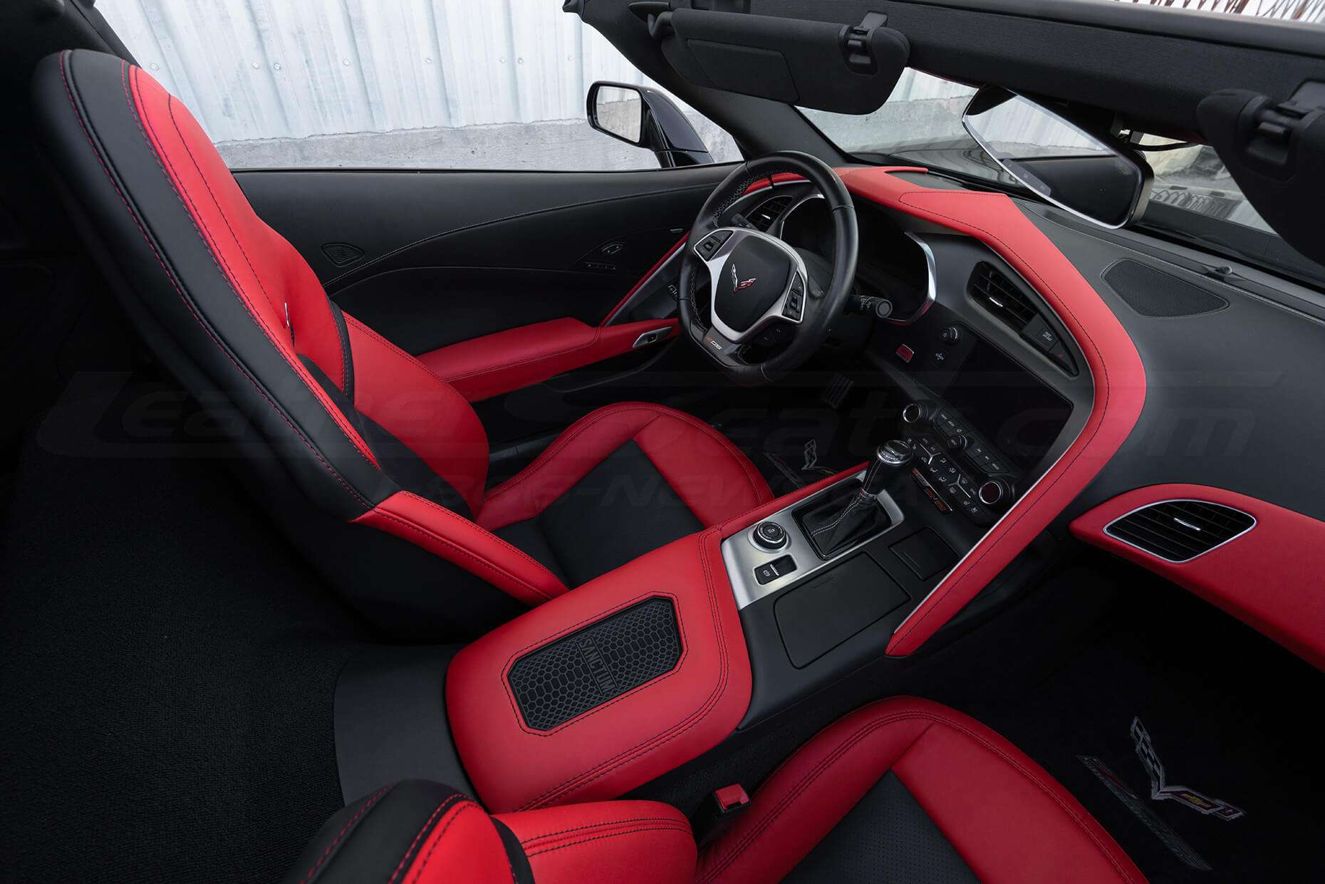 This package was designed specifically for the 7th Gen Chevrolet Corvette seats and is a great choice for anyone looking to upgrade from factory cloth or customize their seats to fit their own personal style. The package includes replacement covers for the front seats, giving your entire vehicle a consistent color, grain, and feel. Check out our Leather Content Diagrams . to see the different combinations of leather and vinyl we offer, with options all the way up to 100% leather.