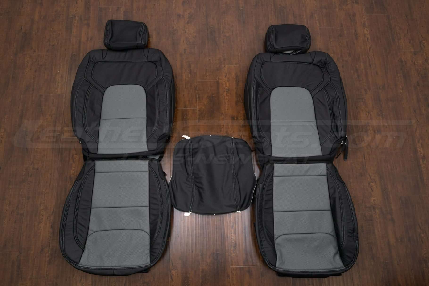 For a clean, custom look, this package comes pre-configured in Two-Tone Black with Perforated Lapis Combo and contrast Lapis stitching.. You can also order a Leather Console Lid Cover, Sanctum Wireless Charging Console, and Door Armrests + Quilted Door Insert Upholstery to match the seat covers and complete the transformation.