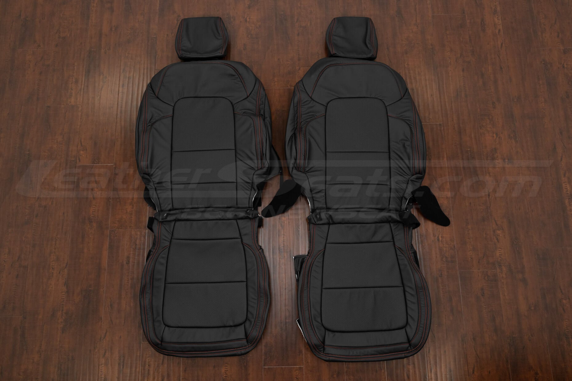For a clean, factory-style look, this package comes pre-configured in Single-Tone Black with Perforated Inserts and contrast Bright Red stitching.