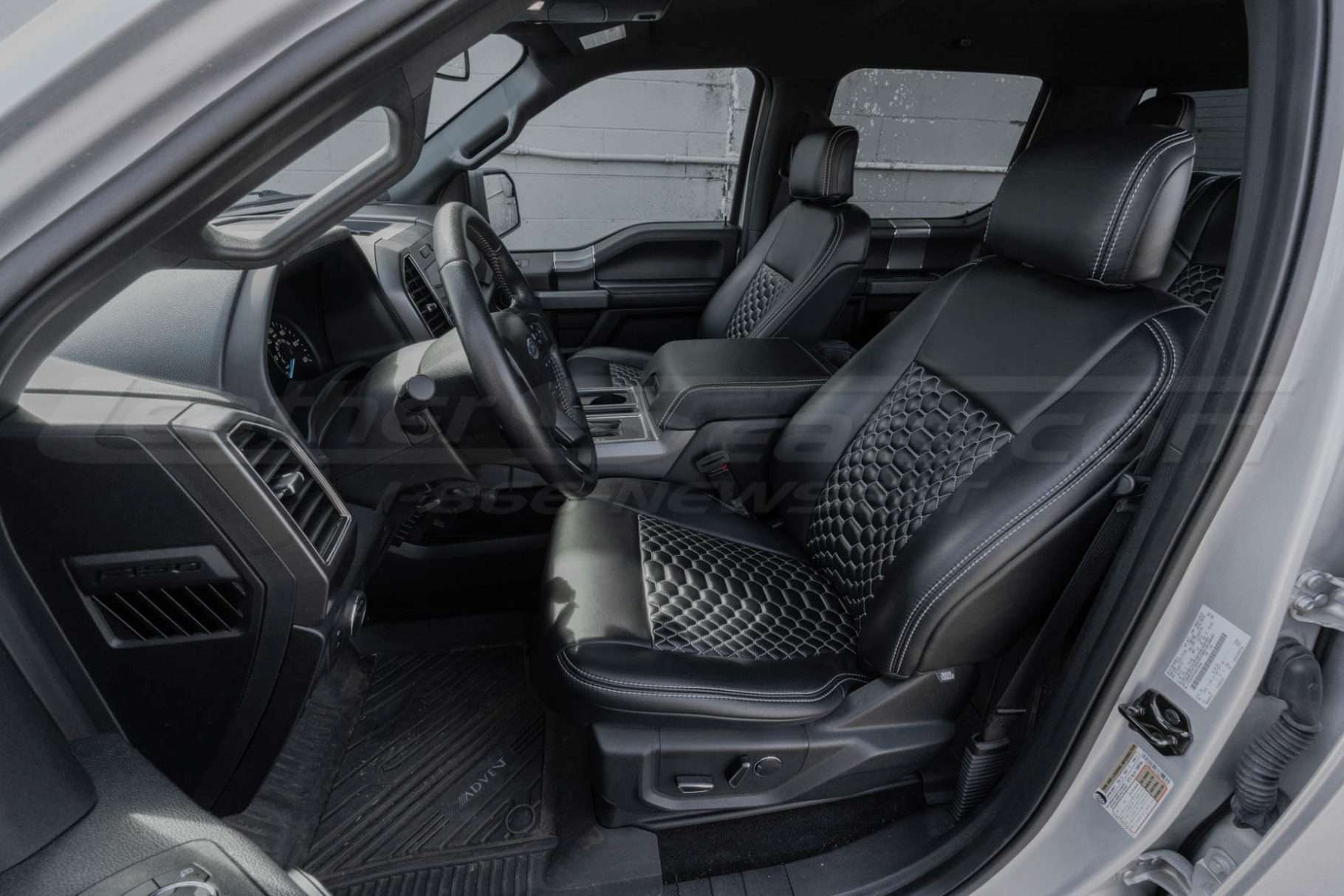 Ford F-150 Quilted Leather Seat Upholstery Kit Black with Reticulated Hexagon Stitching