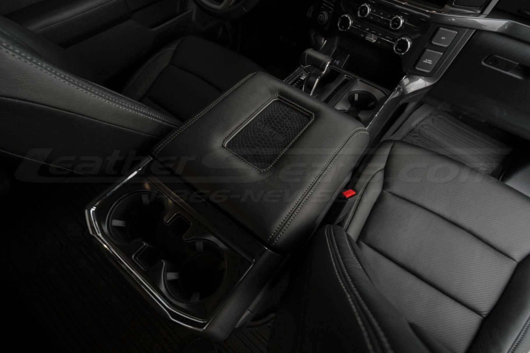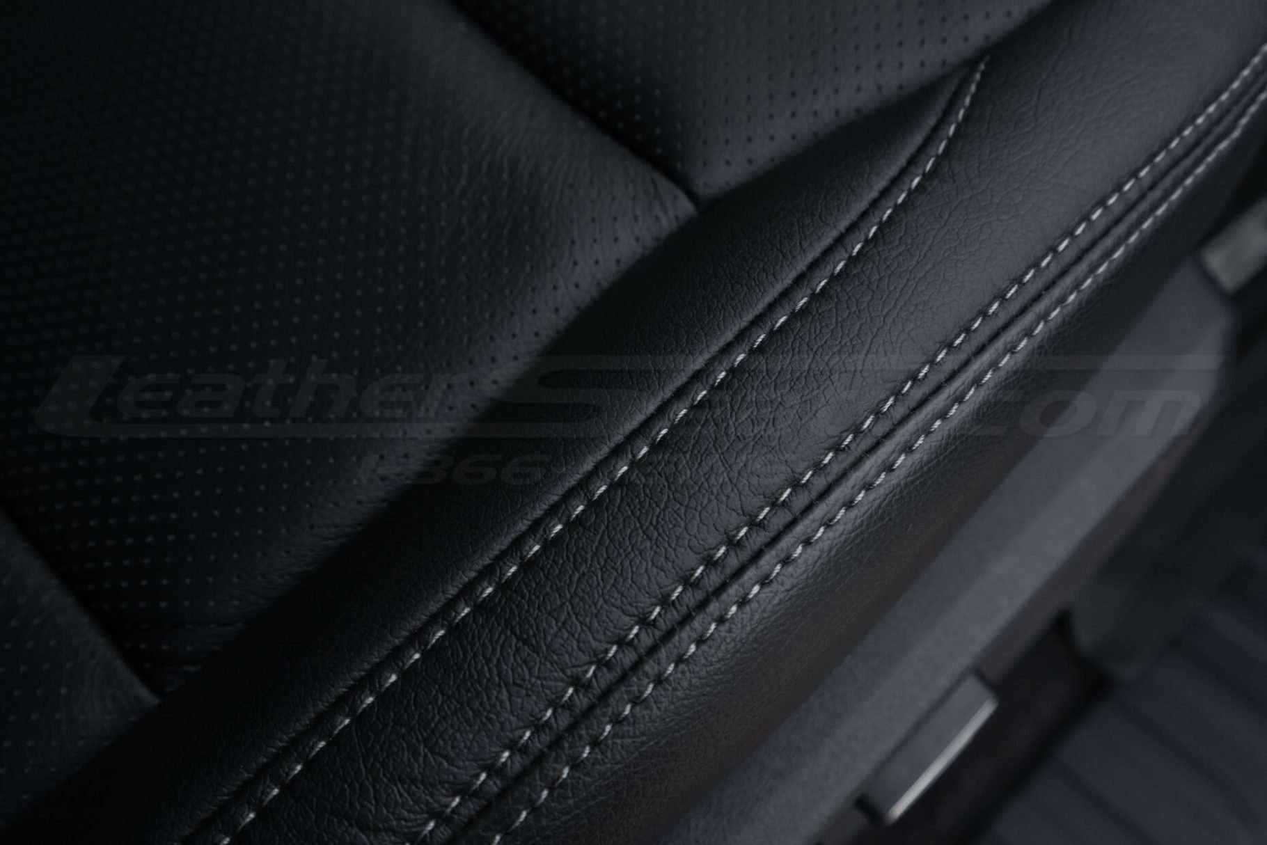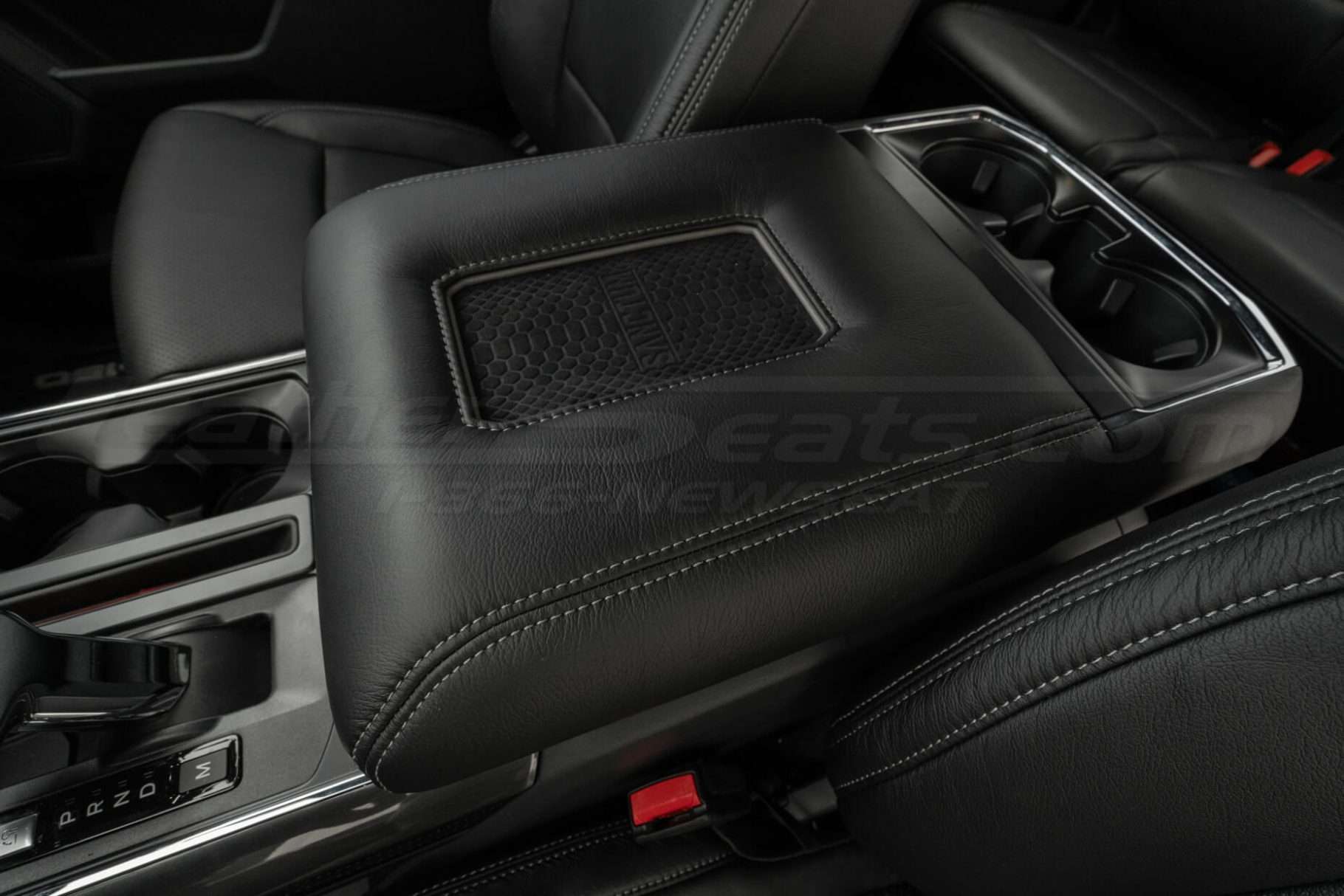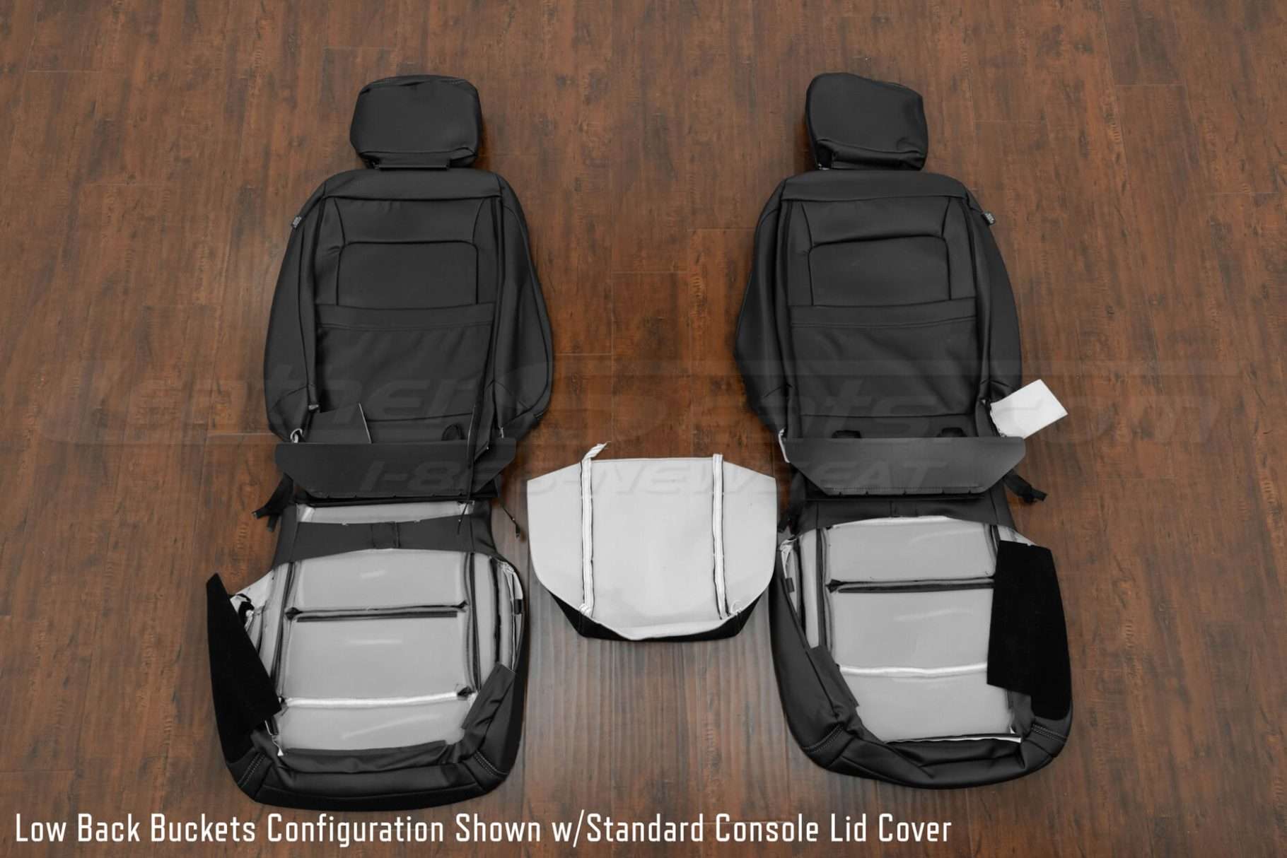 For a clean, factory-style look, this package comes pre-configured in Single-Tone Black with Perforated Combo and contrast Stone stitching. You can also order a Leather Console Lid Cover / Leather Console Lid Cover (Work Surface) or Sanctum Wireless Charging Console to match the seat covers and complete the transformation.