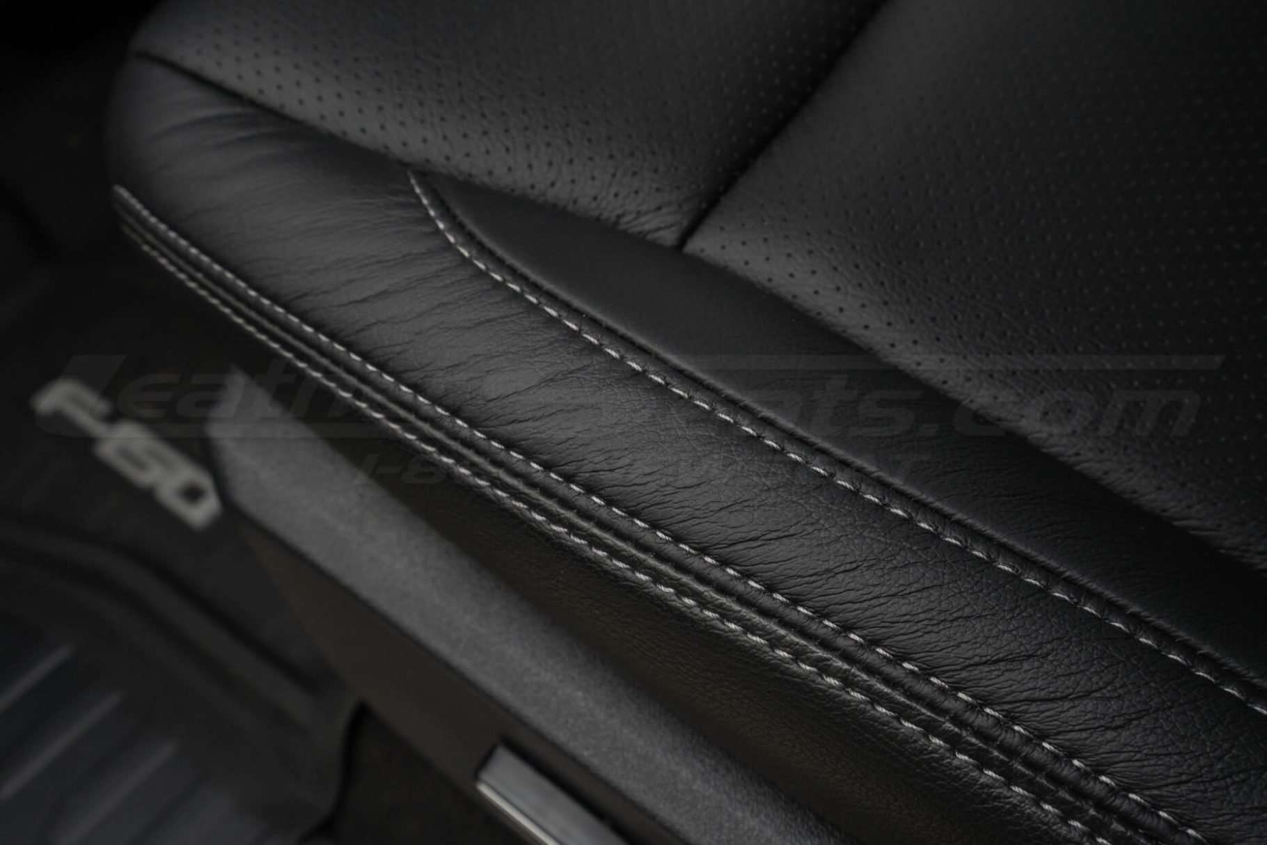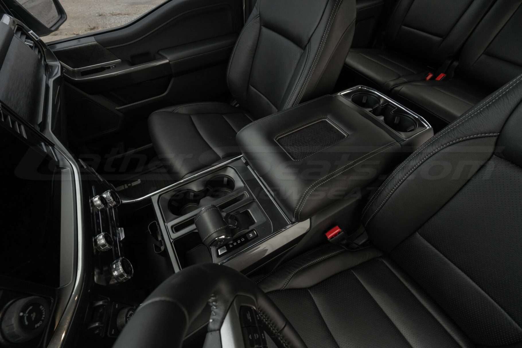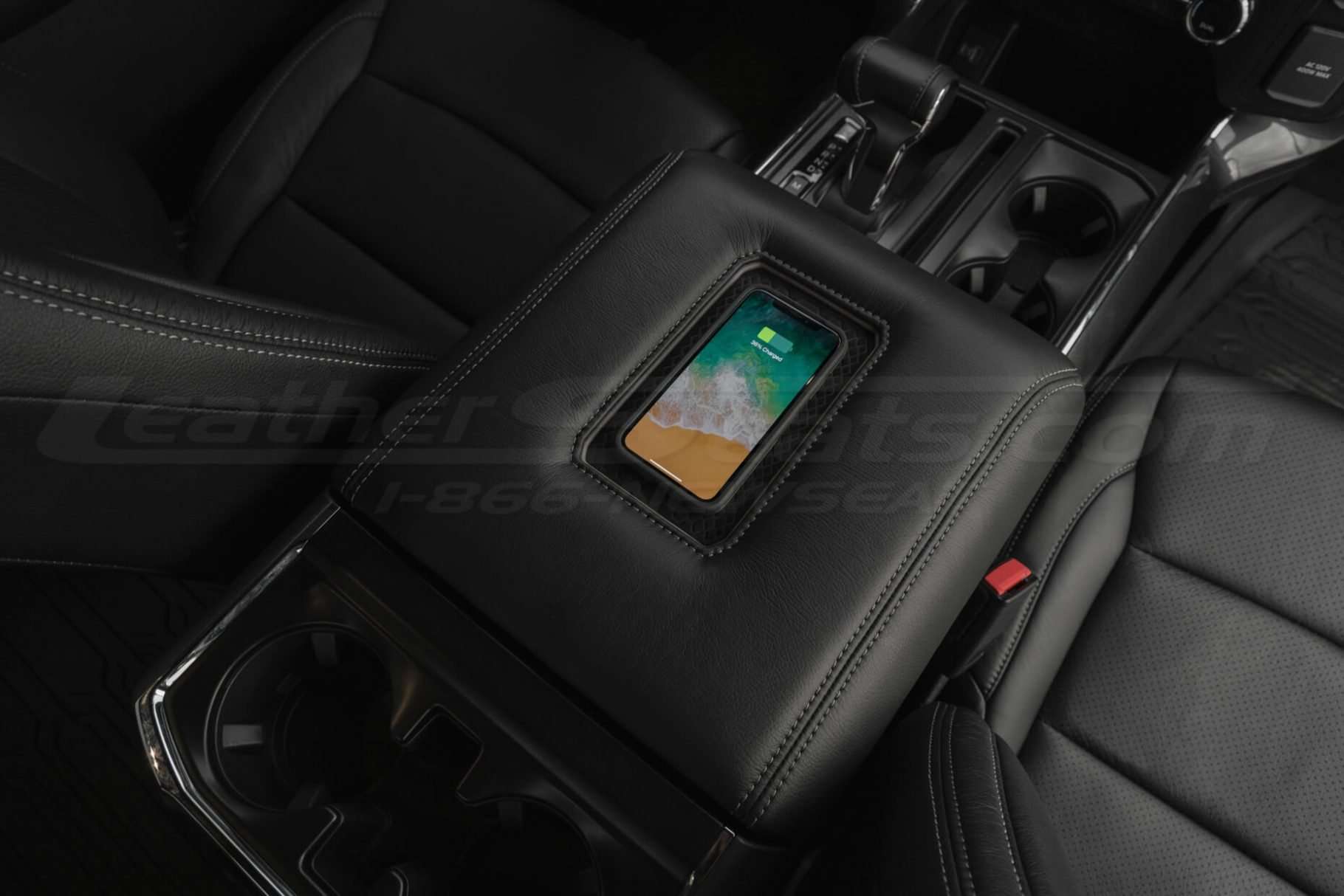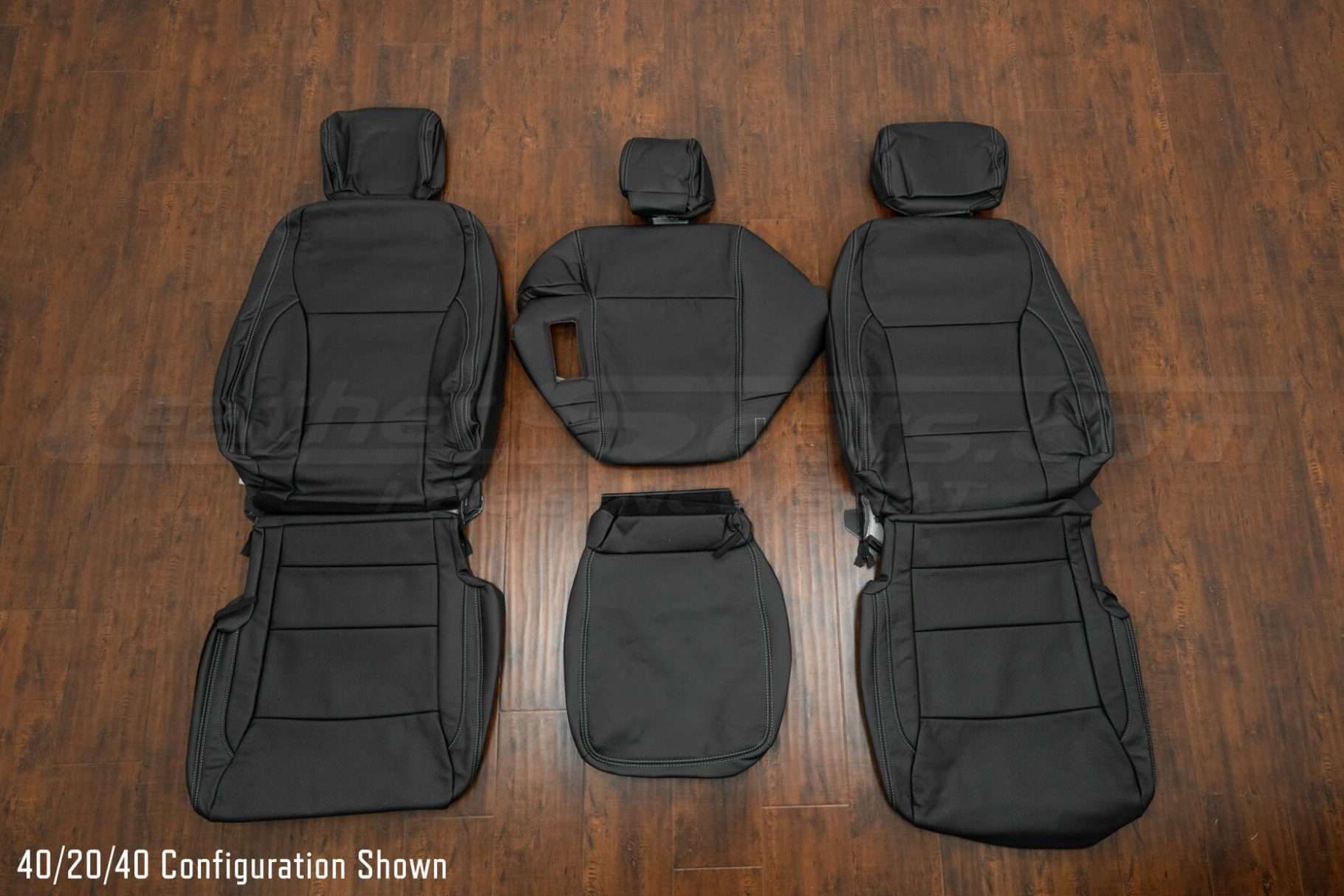 For a clean, factory-style look, this package comes pre-configured in Single-Tone Black with Perforated Combo and contrast Stone stitching. You can also order a Leather Console Lid Cover / Leather Console Lid Cover (Work Surface) or Sanctum Wireless Charging Console to match the seat covers and complete the transformation.