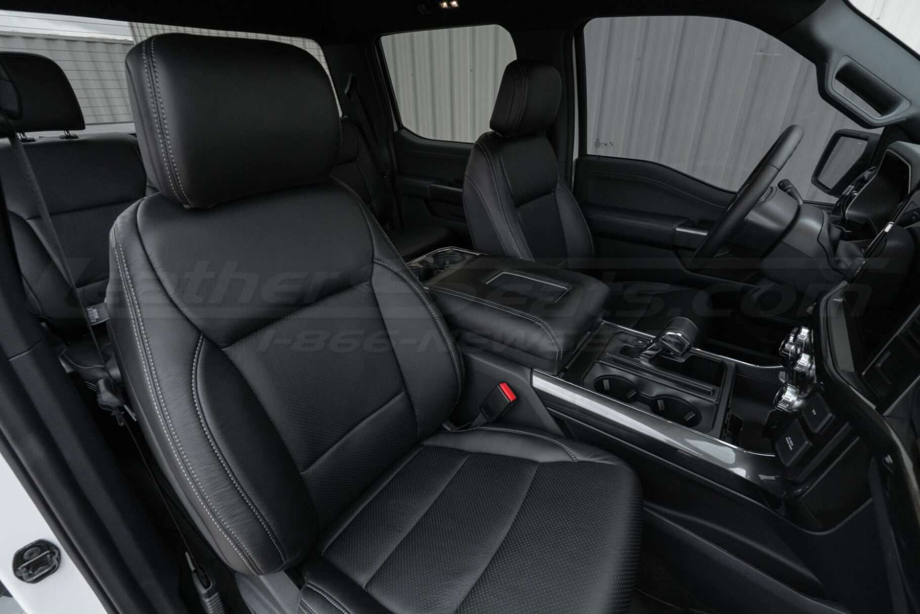 This package was designed specifically for the 14th Gen Ford F-150 seats and is a great choice for anyone looking to upgrade from factory cloth or customize their seats to fit their own personal style. The package includes replacement covers for both the front and rear seats, giving your entire vehicle a consistent color, grain, and feel. Check out our Leather Content Diagrams . to see the different combinations of leather and vinyl we offer, with options all the way up to 100% leather.