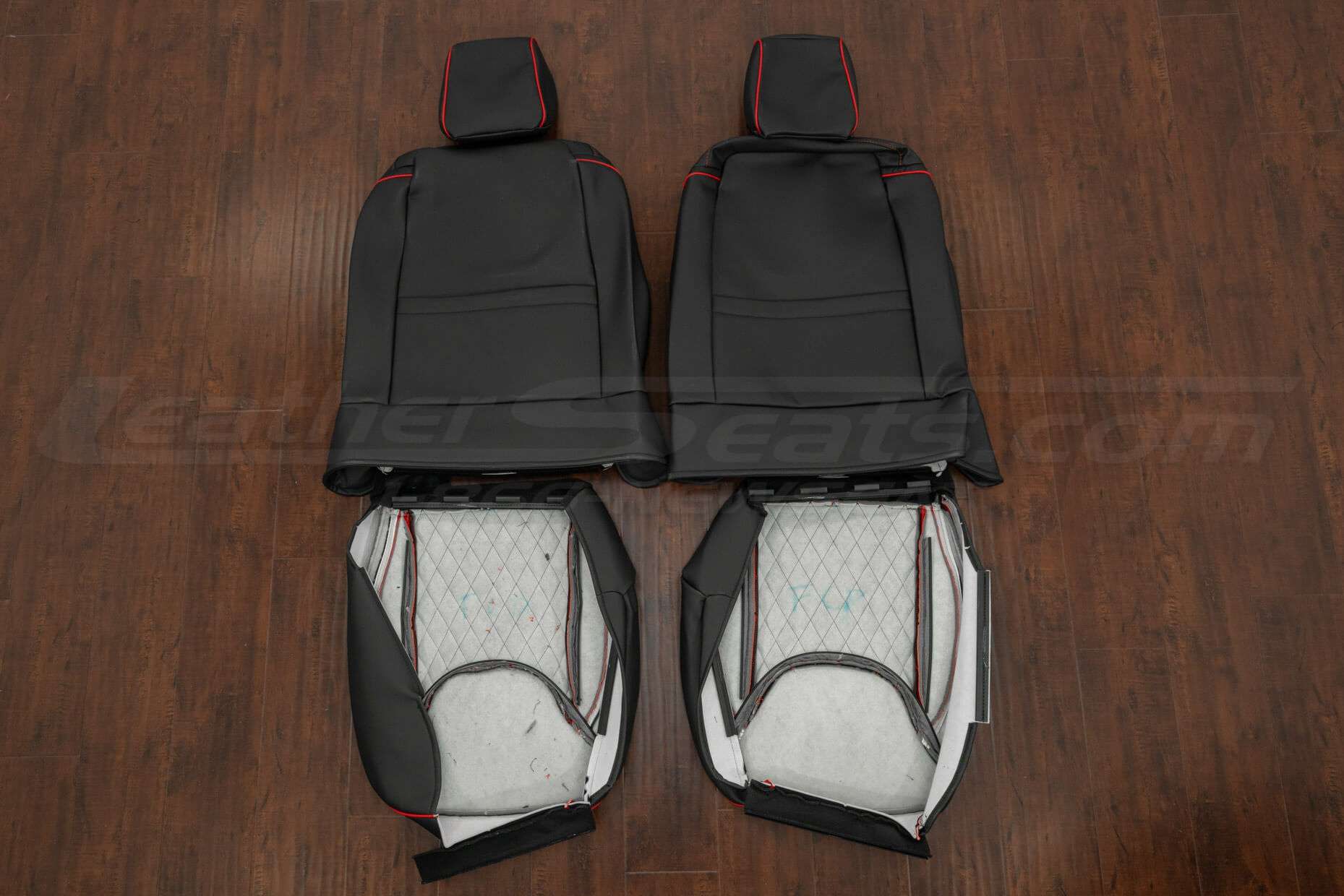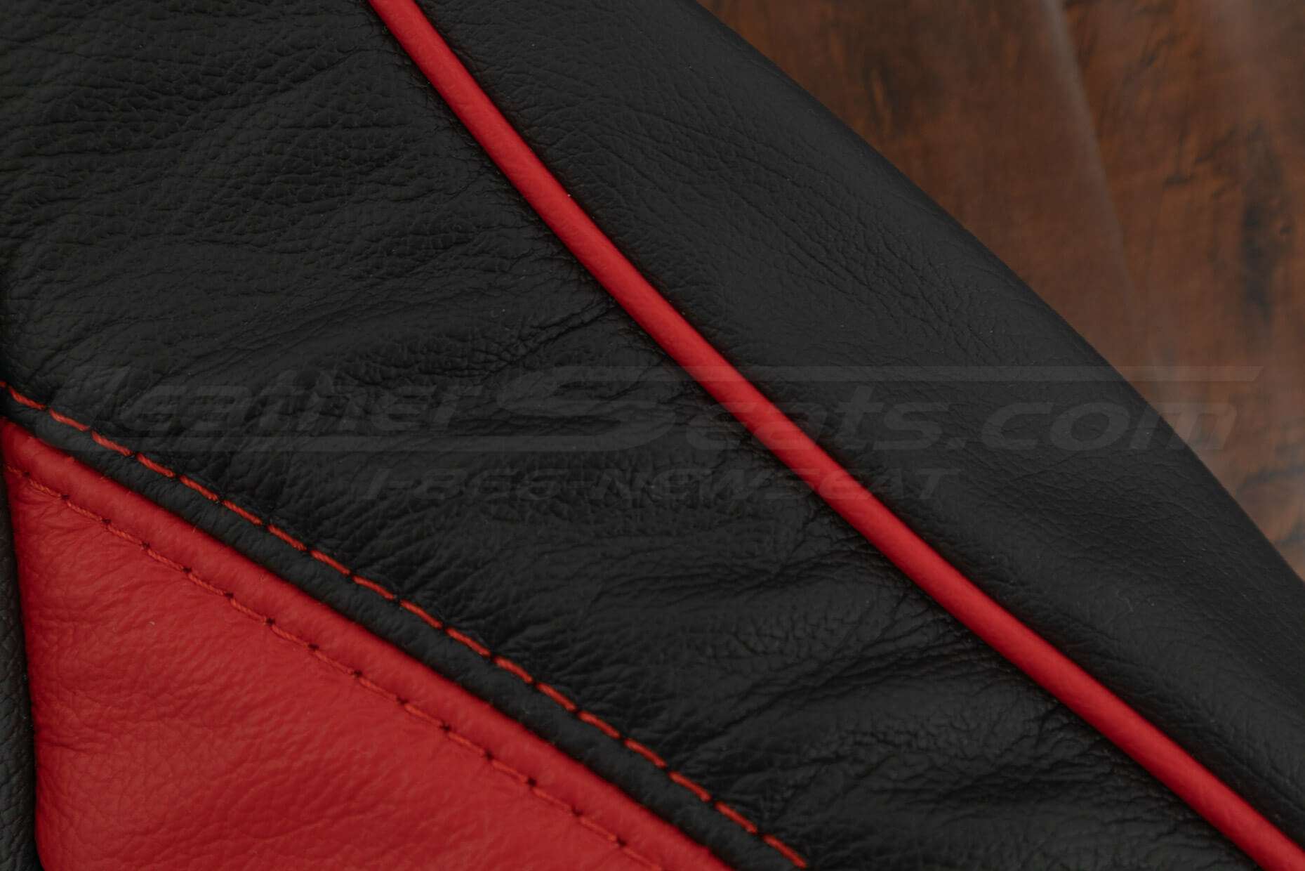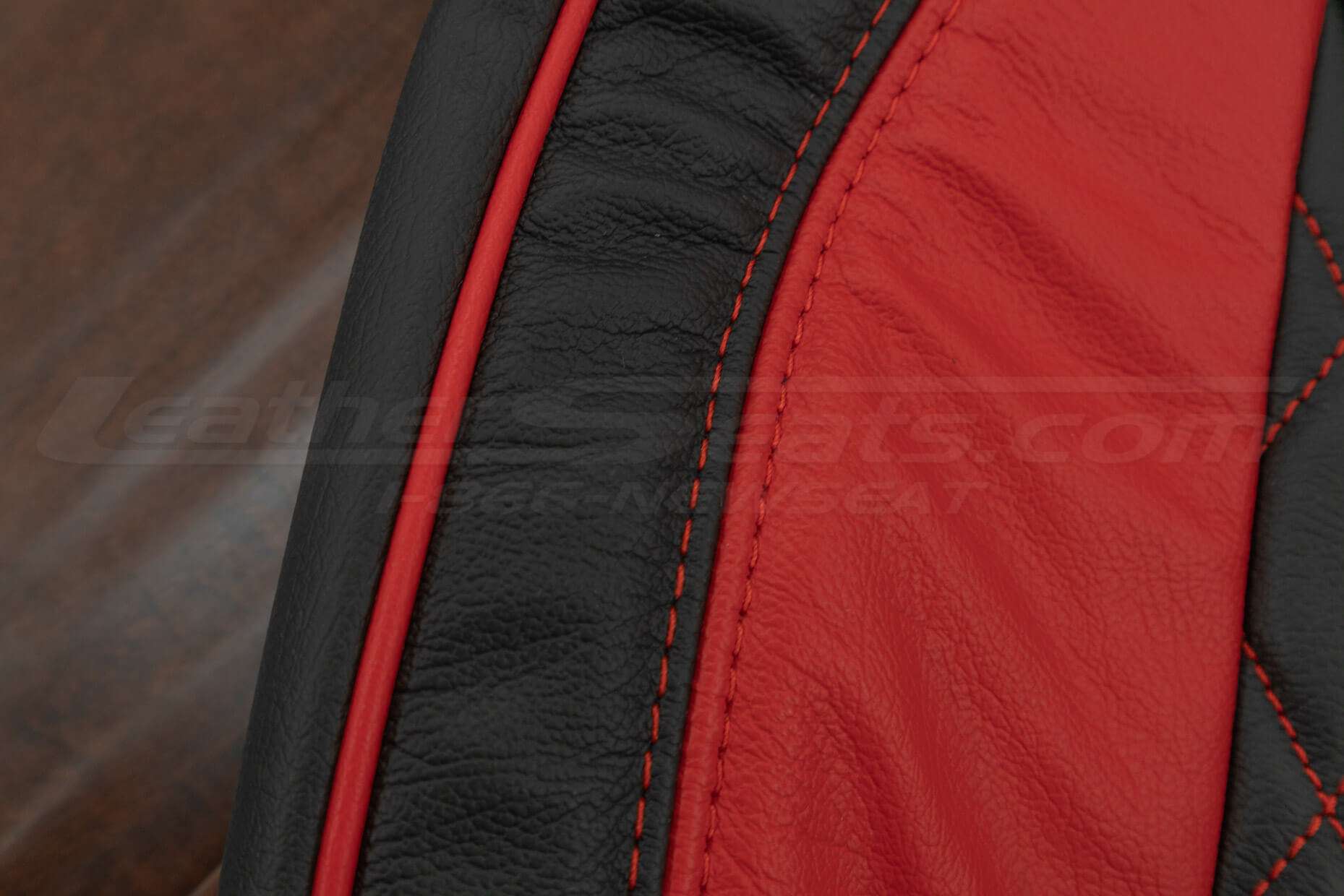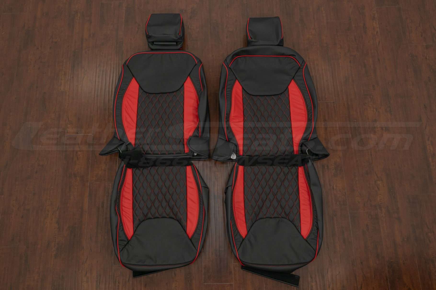 For a clean, custom look, this package comes pre-configured in Two-Tone Black with Bright Red Wings, CNC Stitched Single-Diamond Inserts and contrast Bright Red Piping. You can also order a Leather Console Lid Cover, Manual Shift Boot Upholstery or Sanctum Wireless Charging Console to match the seat covers and complete the transformation.