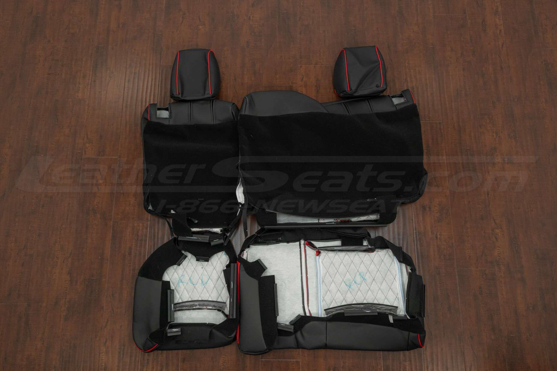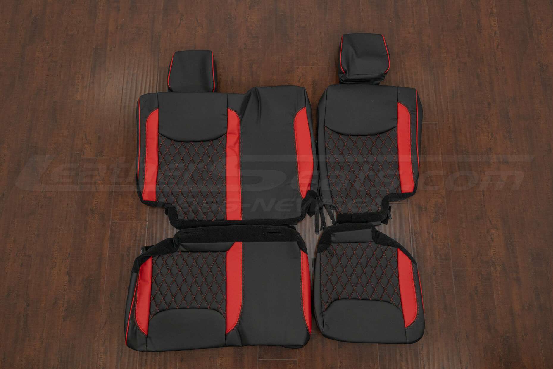 Jeep Wrangler Quilted Leather Seat Upholstery Kit Black/Bright Red with Diamond Stitching