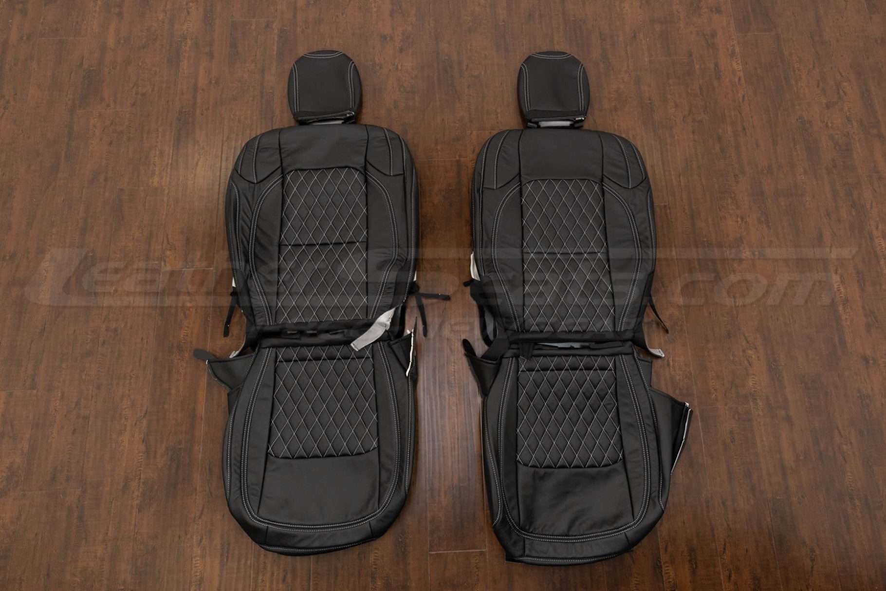 For a clean, factory-style look, this package comes pre-configured in Single-Tone Black with CNC Diamond Stitched Inserts and contrast Silver stitching. You can also order a Leather Console Lid Cover, Leather Shift Boot Upholstery, Leather E-Brake Boot Upholstery, Leather Door Armrest Upholstery and Sanctum Wireless Charging Console to match the seat covers and complete the transformation.