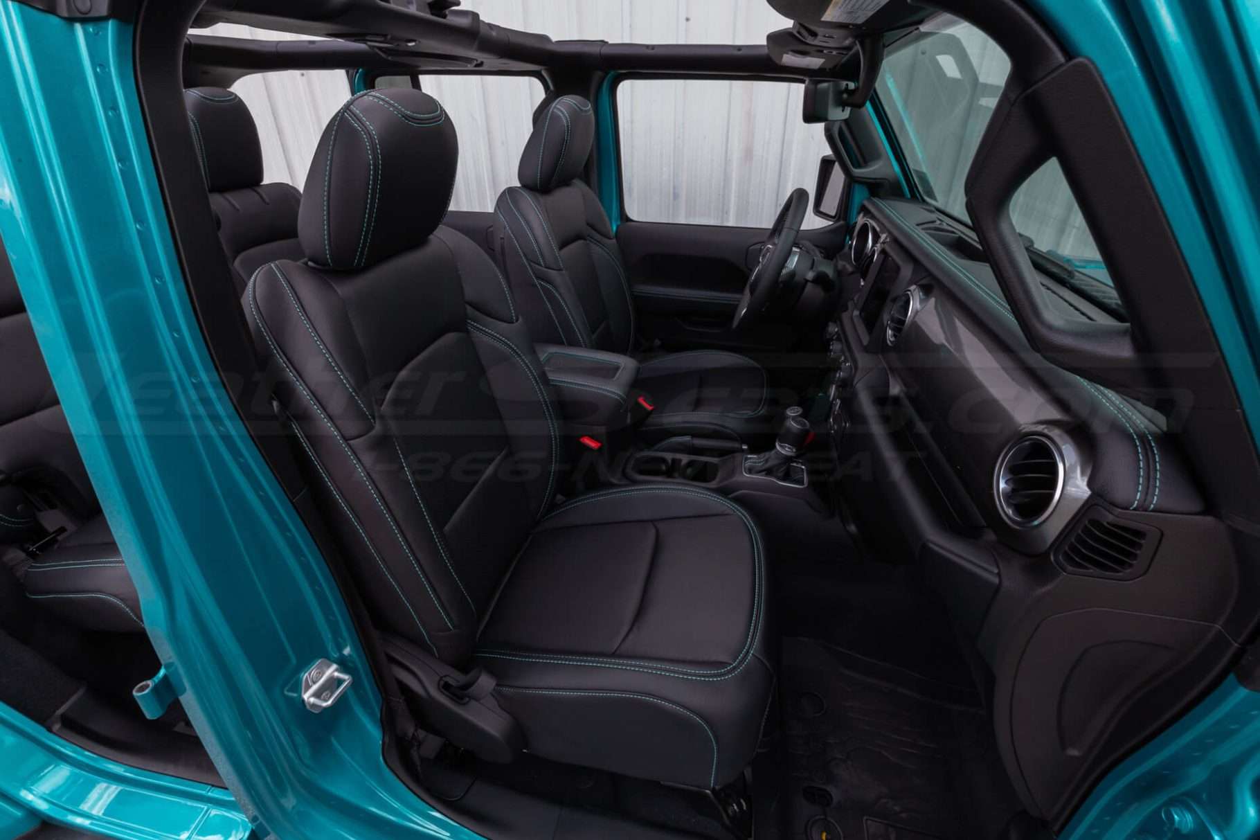 Jeep Wrangler Leather Seat Upholstery Kit Black with Turquoise Stitching