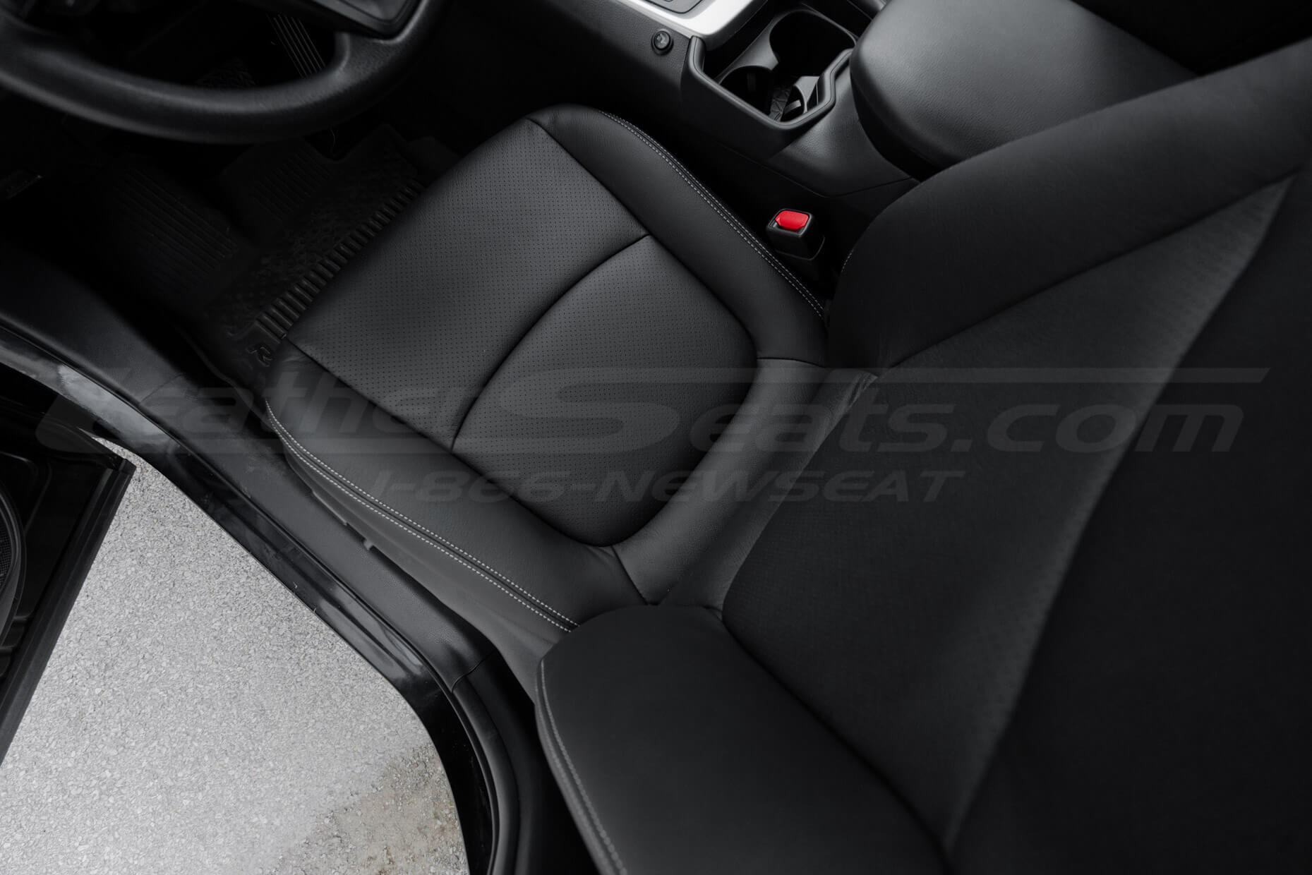 For a clean, factory-style look, this package comes pre-configured in Single-Tone Black with Perforated Body and contrast Dove Grey stitching.