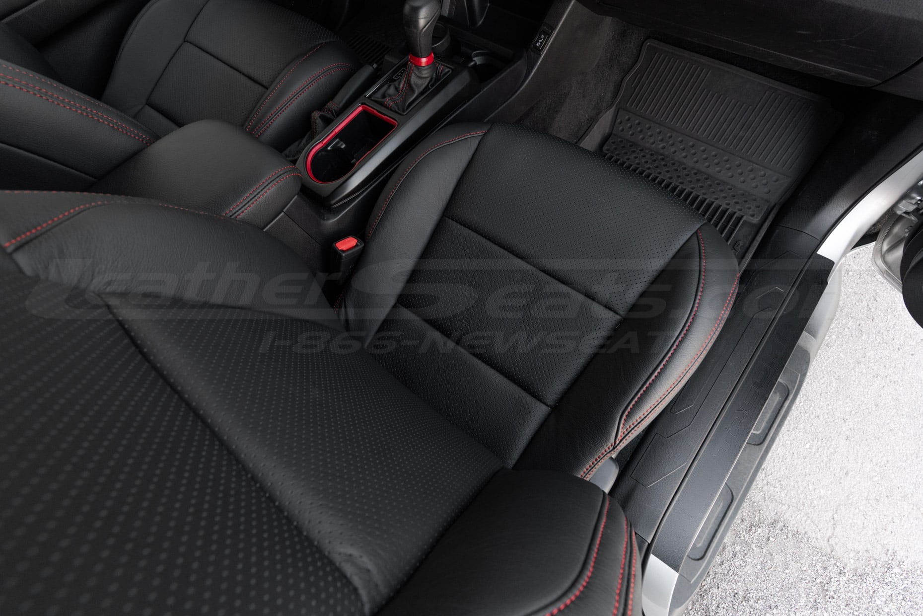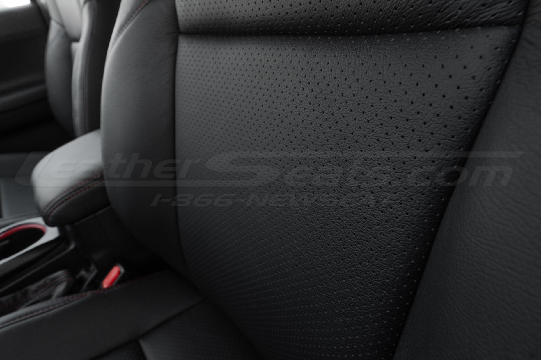For a clean, factory-style look, this package comes pre-configured in Single-Tone Black with Perforated Body and contrast Red stitching. You can also order a Leather Console Lid Cover, Automatic Shift Boot Upholstery, E-Brake Boot Upolstery, Door Insert Upholstery and Dash Insert Upholstery to match the seat covers and complete the transformation.