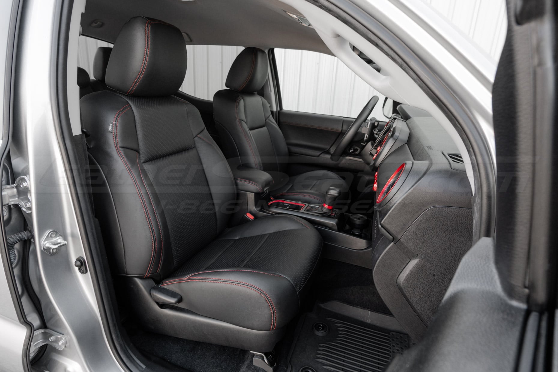 Toyota Tacoma Leather Seat Upholstery Kit Black with Red Stitching