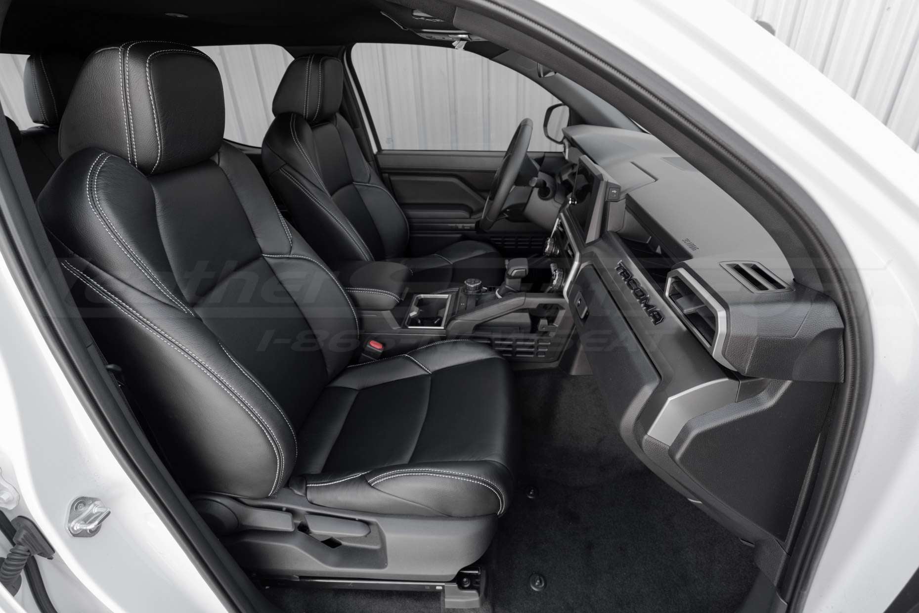 This package was designed specifically for the 4th Gen Toyota Tacoma seats and is a great choice for anyone looking to upgrade from factory cloth or customize their seats to fit their own personal style. The package includes replacement covers for both the front and rear seats, giving your entire vehicle a consistent color, grain, and feel. Check out our Leather Content Diagrams . to see the different combinations of leather and vinyl we offer, with options all the way up to 100% leather.