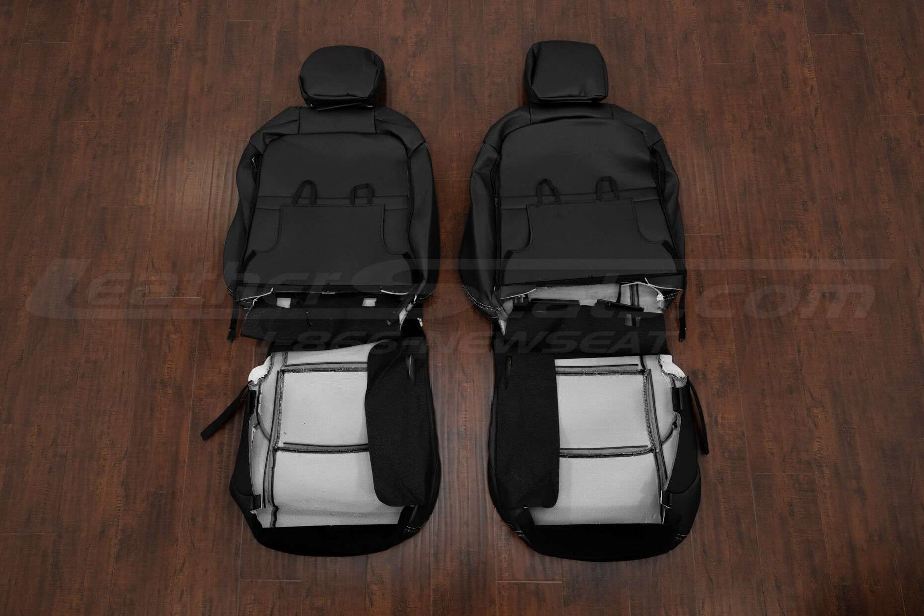 For a clean, factory-style look, this package comes pre-configured in single-tone Black with your choice of contrast Dove Grey stitching. We also offer perforation options upon request. You can also order a Leather Console Lid Cover to match the seat covers and complete the transformation. We also have some installation overview videos available for both the center console lid and the front seat upholstery to help guide you through the process.