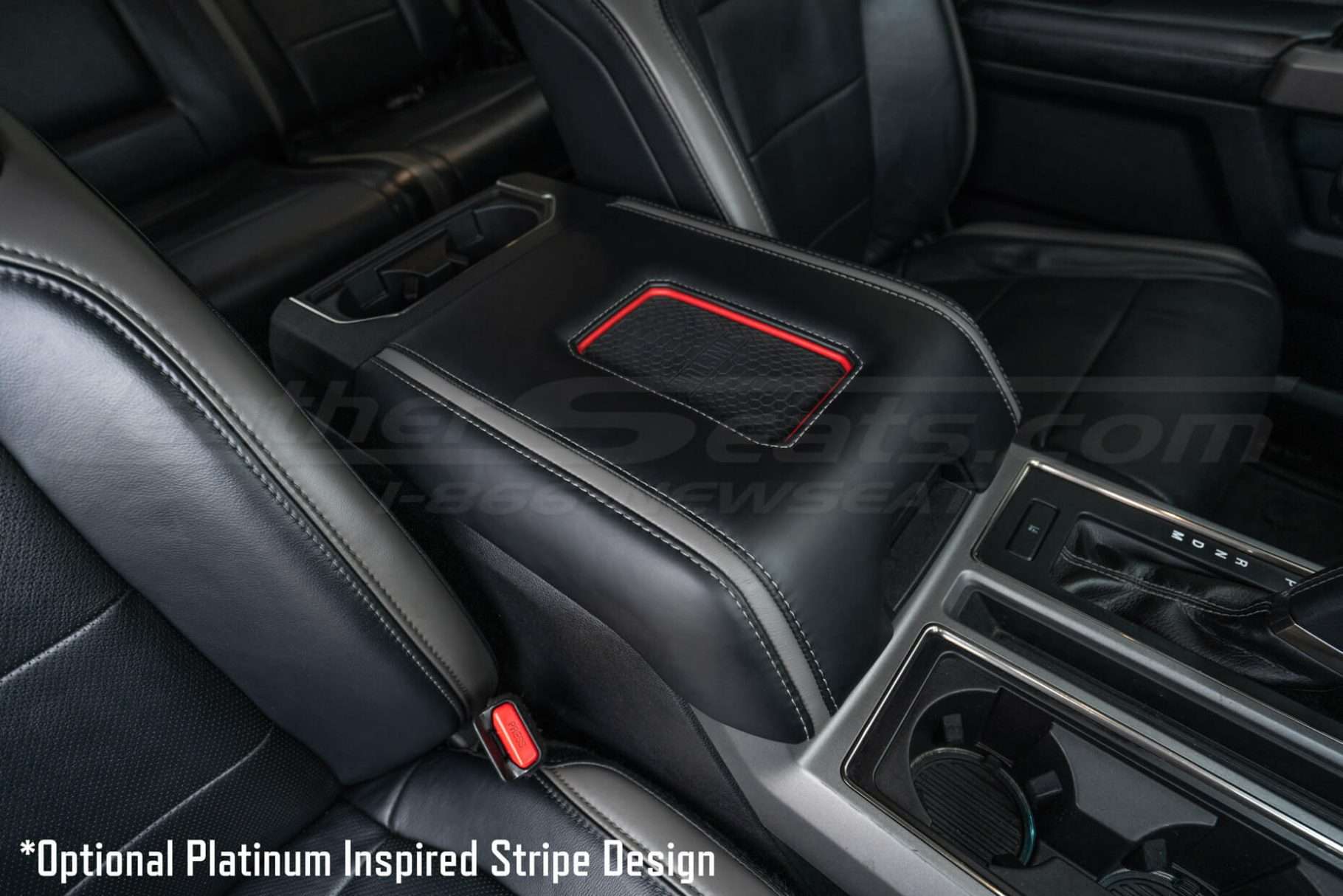 – Upgrades Factory Vinyl Console Lid to Leather
